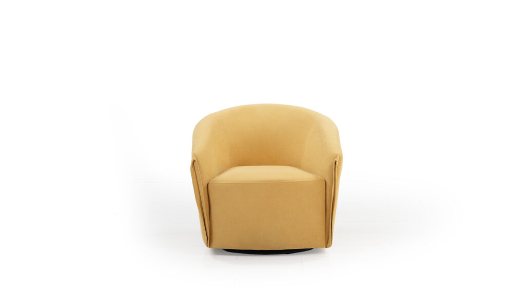Функционално кресло с въртяща се на 360 градуса метална база. Ефектно допълнение към различни интериори – дом, офис, лоби бар. Удобна мека седална част и ергономична облегалка.