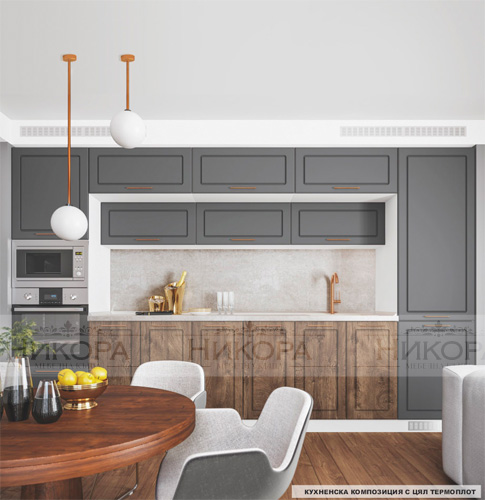В цената на композицията не са включени термогръб, водобран, присъединителна лайсна, декоративни елементи, мивки, батерии и електроуреди.