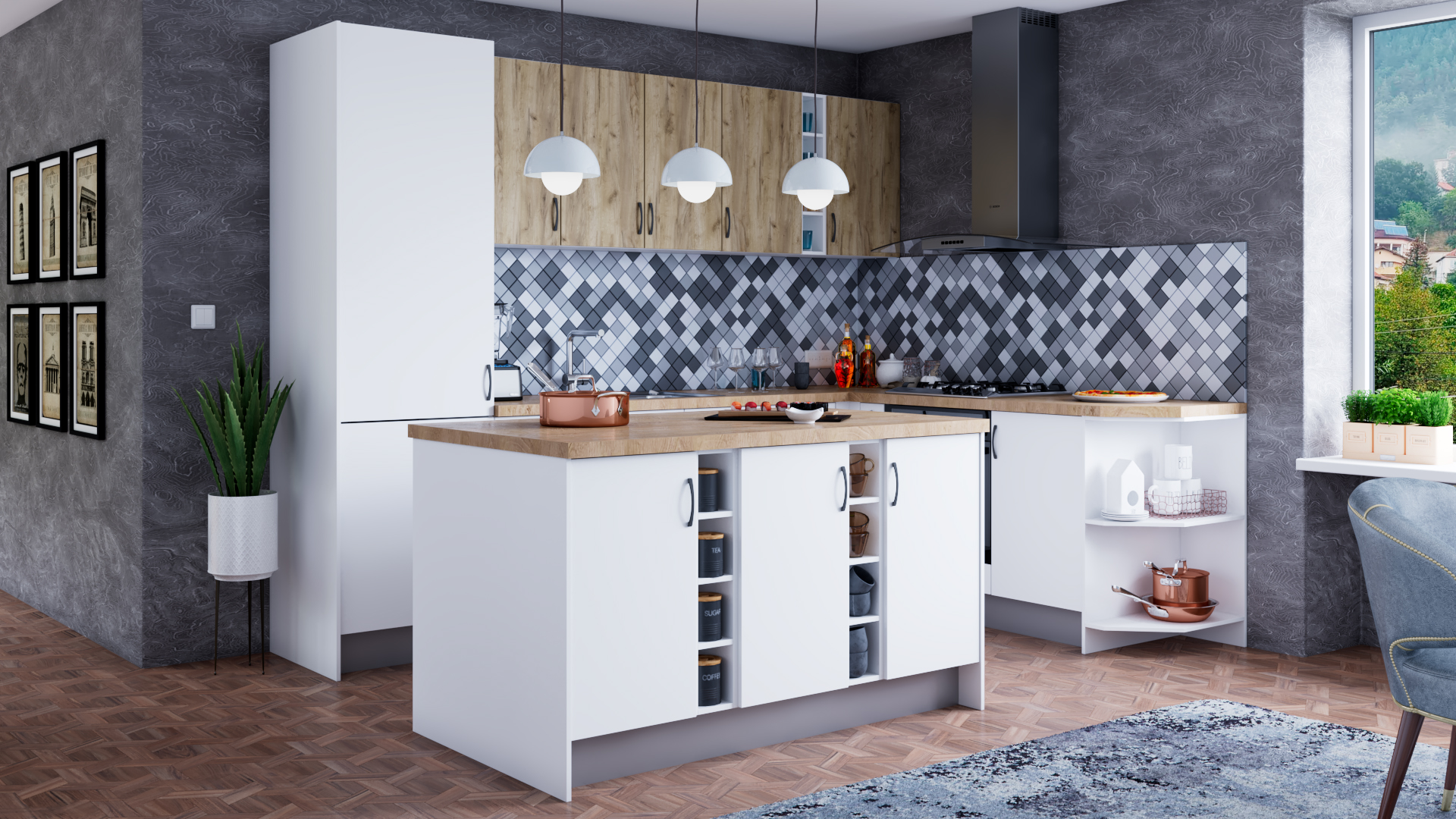 В цената на композицията не са включени остров, термогръб, водобран, присъединителна лайсна, дръжки, декоративни елементи, мивки, батерии и електроуреди.