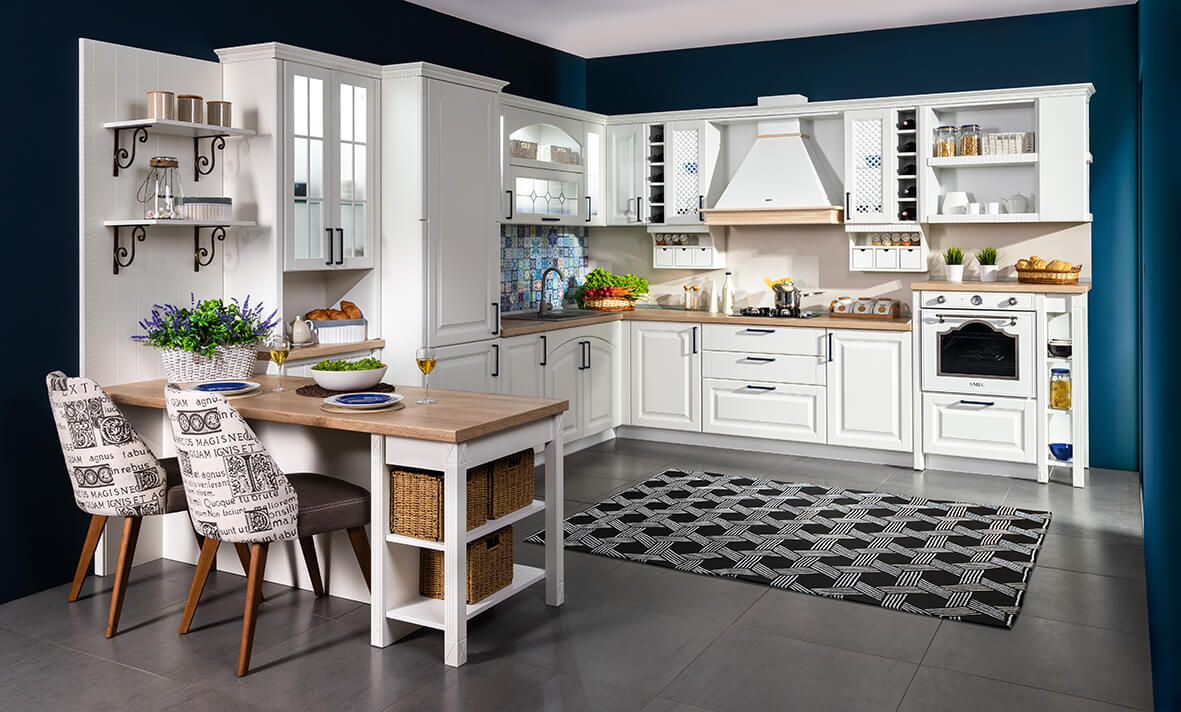 Пренесете морската атмосфера у дома със средиземноморския стил на кухня Лорена. Тя е подходяща за всякакви помещения и е гъвкава спрямо желанията ви. Всичко може да се променя и заменя така, че да стане вашата мечтана кухня . Моделът е изработен с вратички от MDF, което го прави по-достъпен за любителите на класиката.