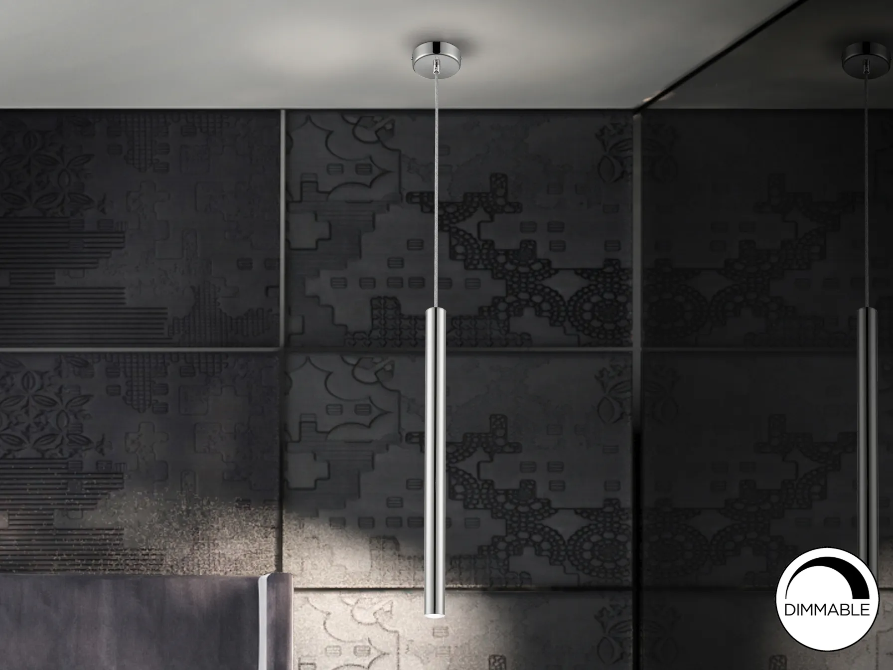 Лампата е изработена от висококачествени материали, които осигуряват дълготрайна употреба. Хромираното покритие придава модерен вид, а опалният акрилен дифузер разпределя светлината равномерно, създавайки уютна атмосфера. Идеална е за всяко помещение, където искате да добавите стил и комфорт.