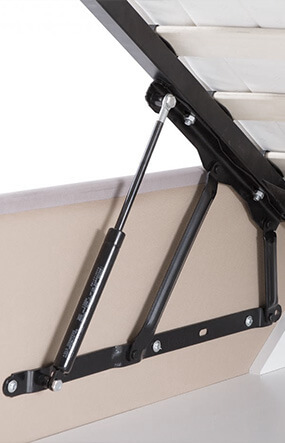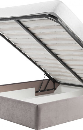 Леглото е в комплект с подматрачна рамка, повдигащ механизъм и разполага с ракла за съхранение на багаж, като вътрешната част може да бъде бяла или графит