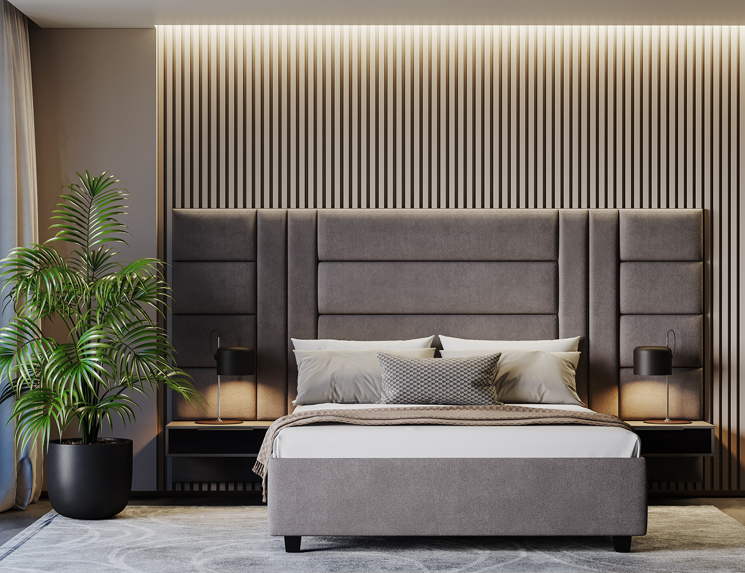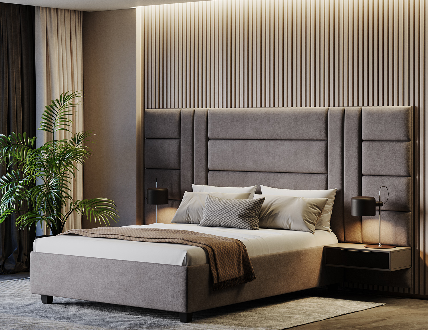 Моделът New York Pat впечатлява с модерен и балансиран дизайн, вдъхновен от динамиката на големите градове. Високата табла с фини геометрични линии придава характер на спалнята и оформя изтънчена атмосфера, подходяща за свободолюбив и енергичен дух.