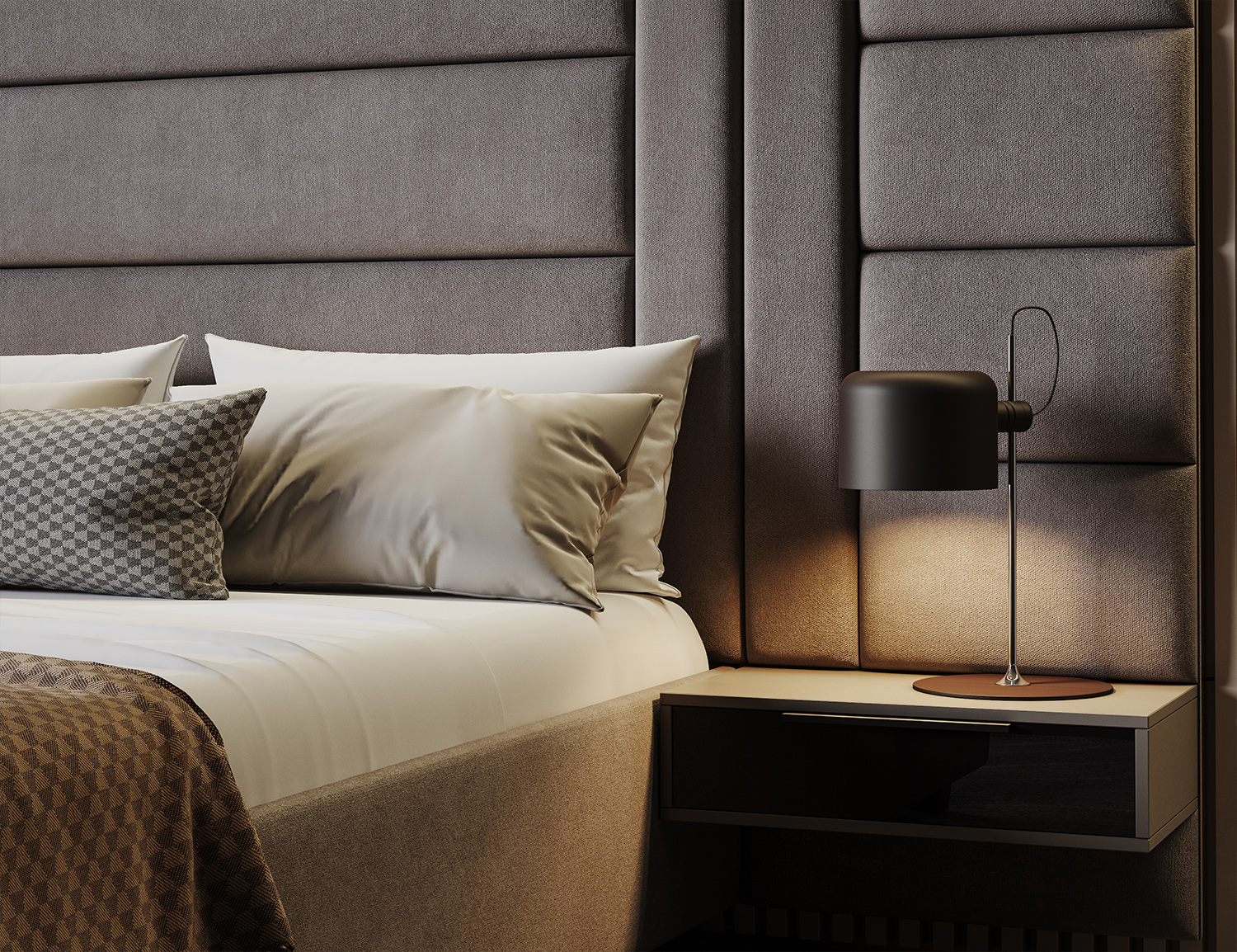 Удължената табла позволява интегрирането на висящo нощнo шкафче. (не е включено в цената)