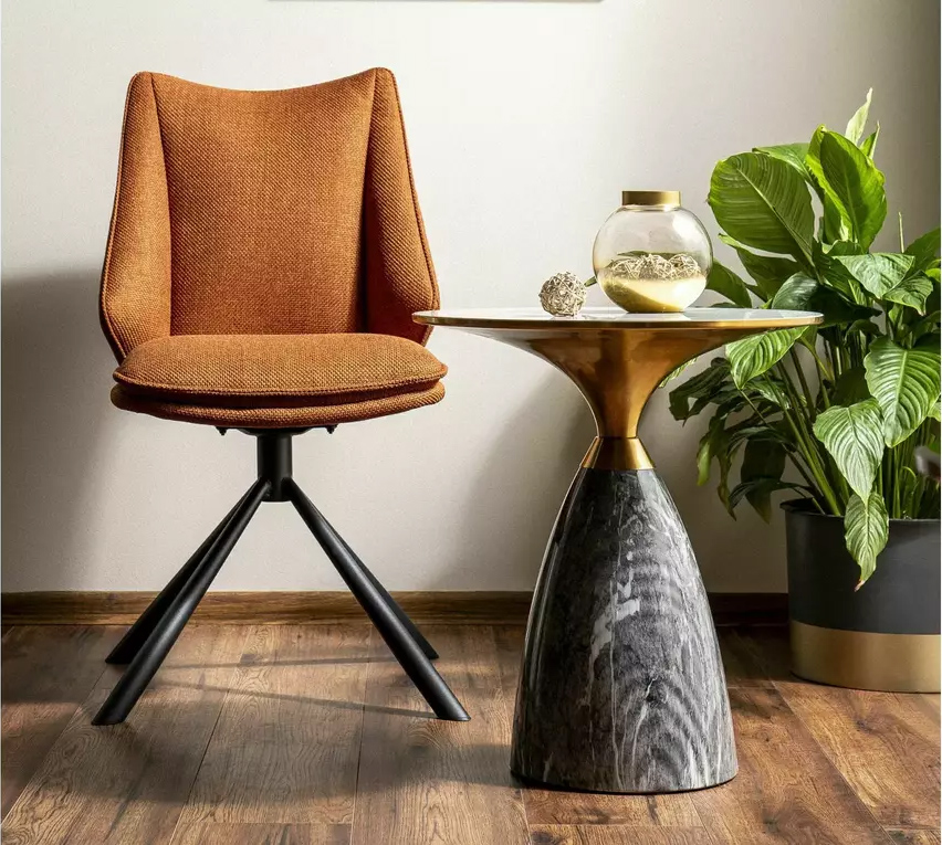 Холна маса, плот: керамика, основа: метал, цвят: бял гланц с мраморен ефект / сив + златен.