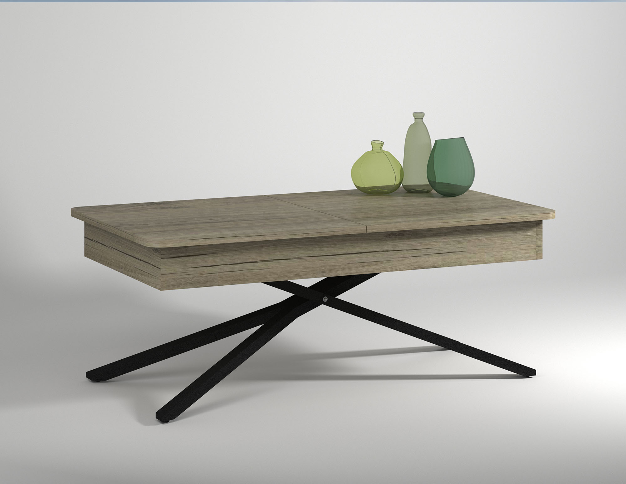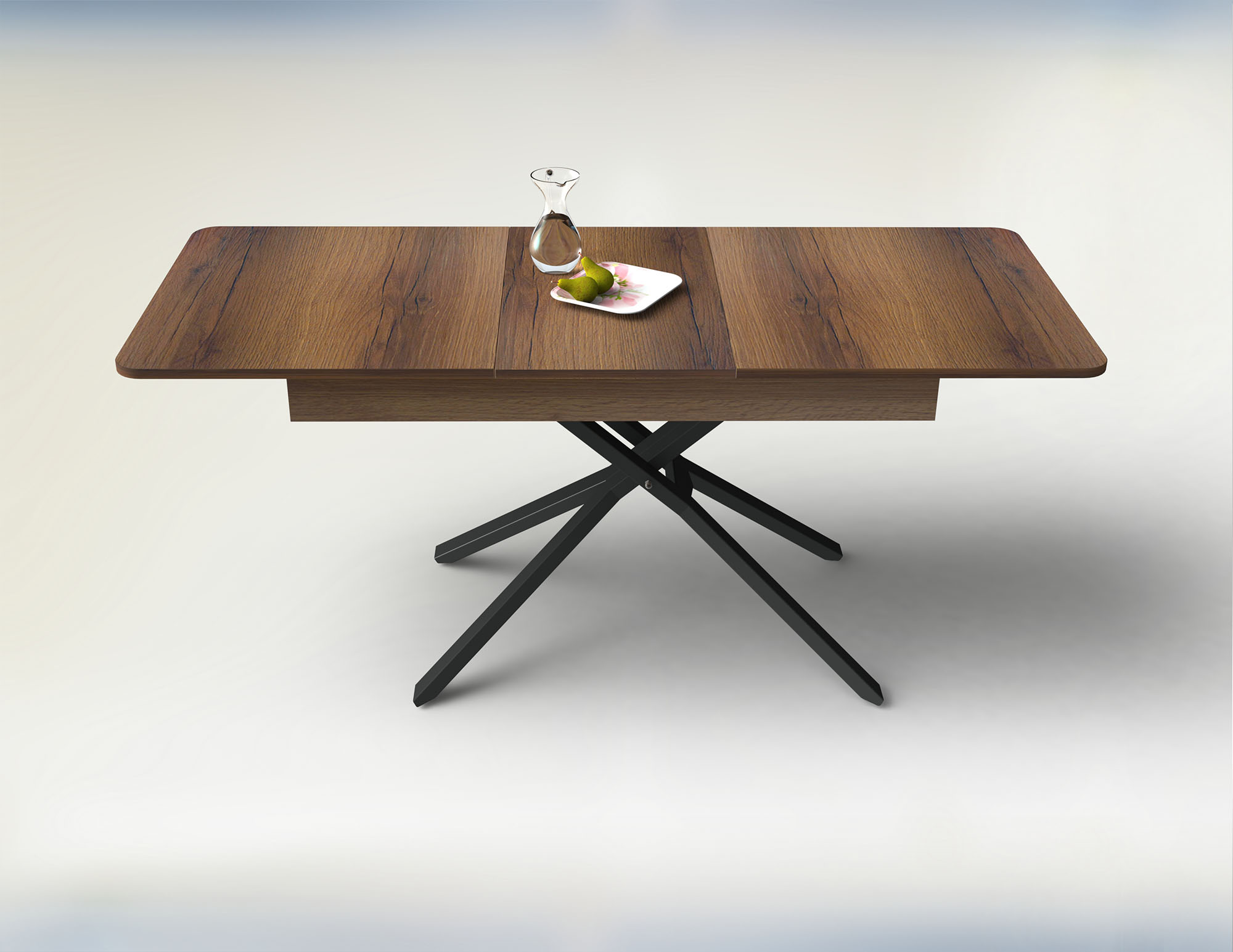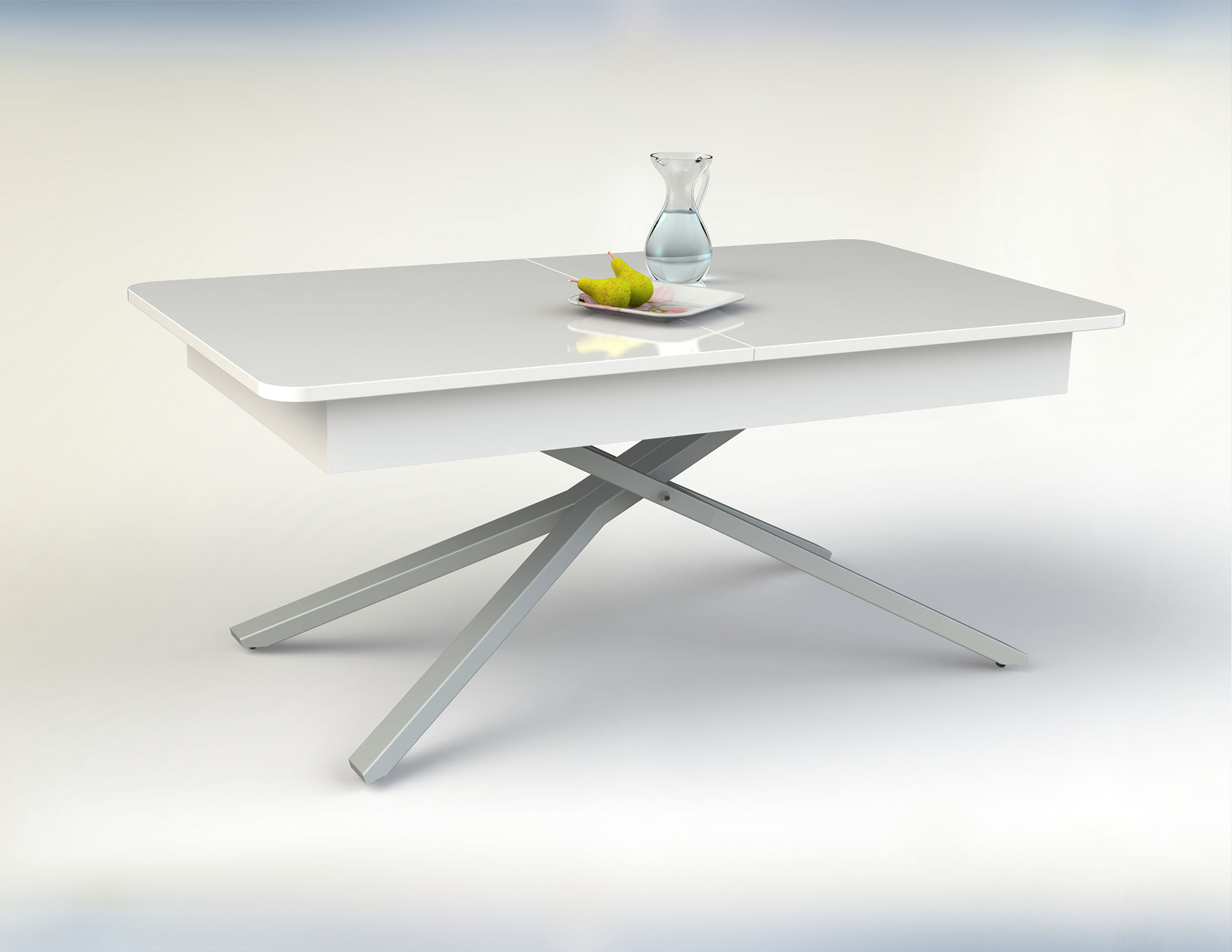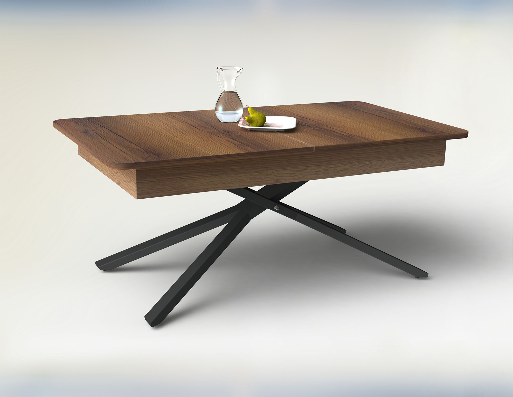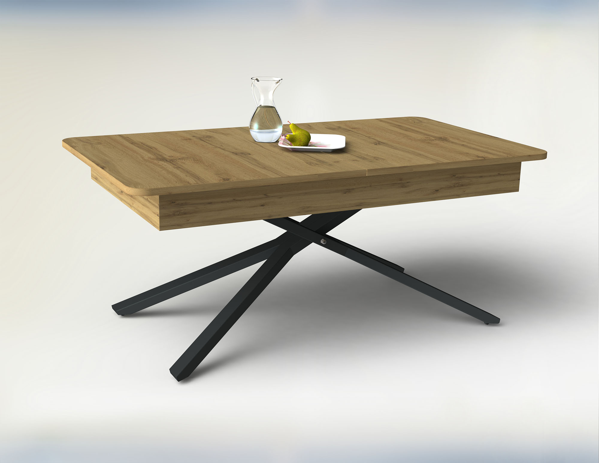 Функционална холна маса със заоблени форми, която лесно се превръща в трапезна.