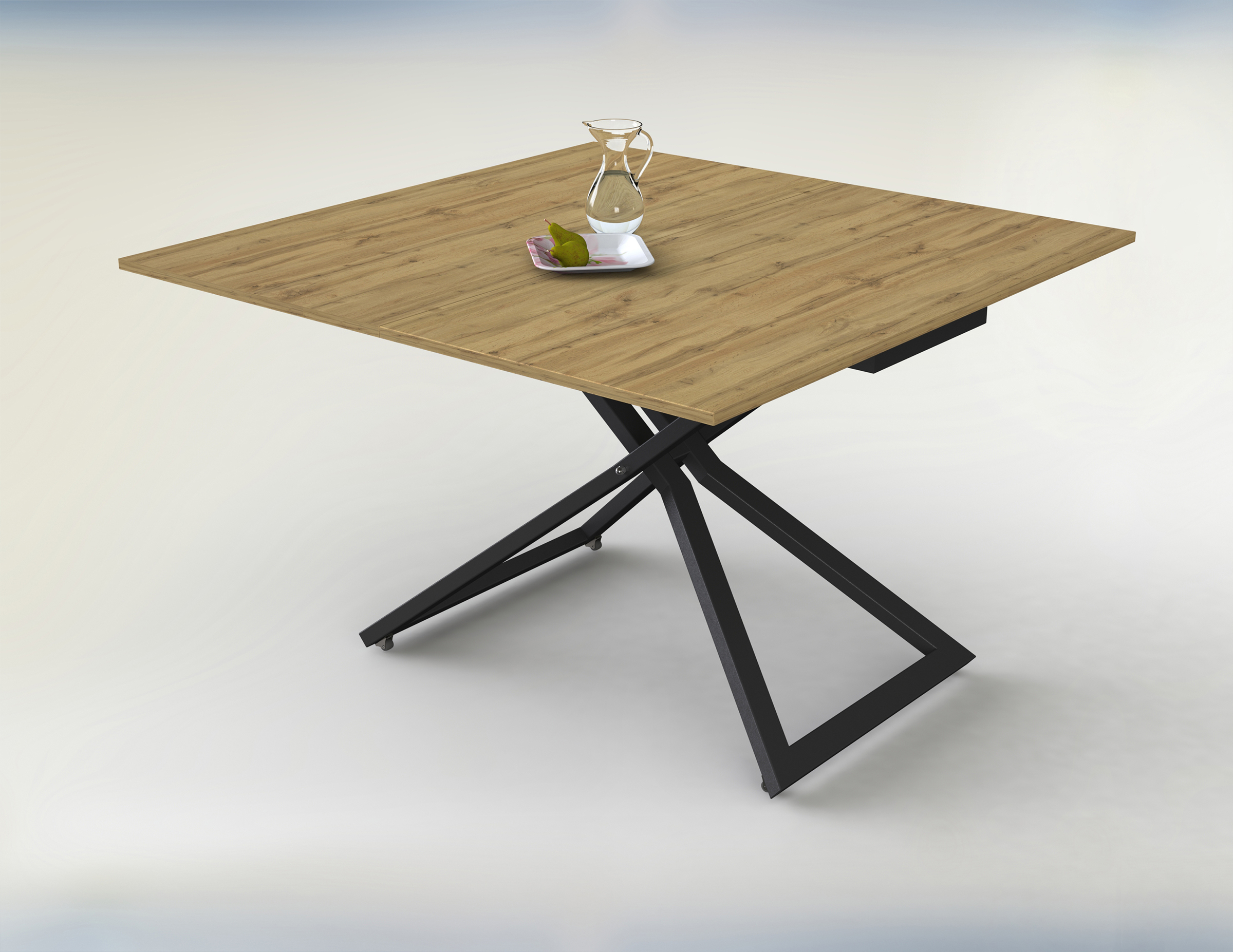 Масата е с размери 60/120см, в разтегнато състояние – 120/120см. Подходяща от 6 до 8 човека. Височината се регулира от