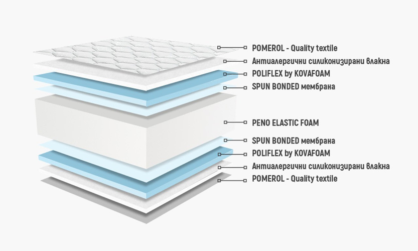 - Предимства: двулицев | без пружини | дишащ | независими опорни точки | ортопедичен