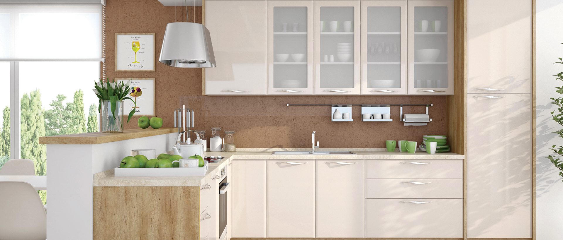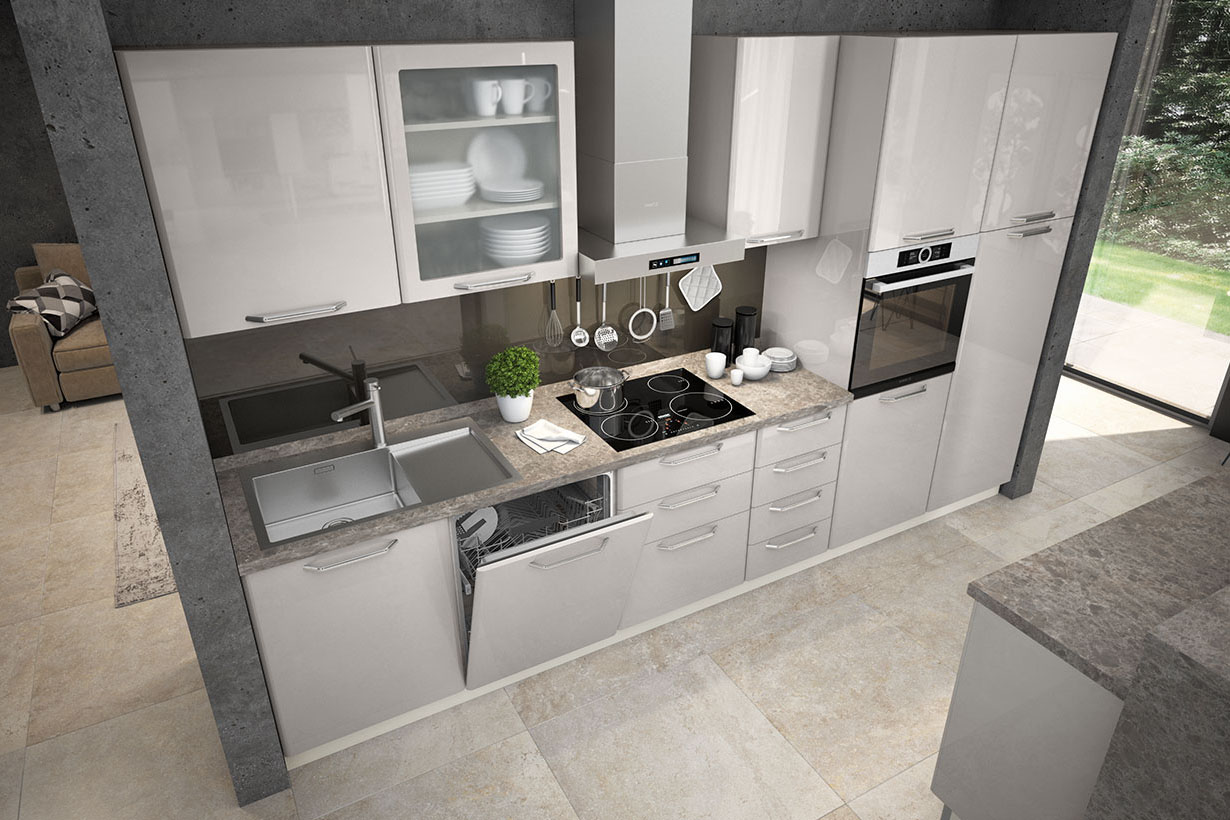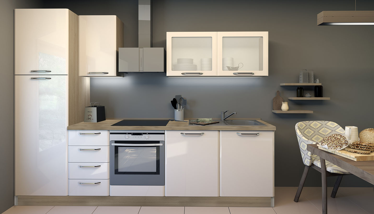 Кухня Modern ще създаде елегантност във Вашия дом. Специфичното заобляне на формата на вратичките “постформинг” от четирите страни, придава на кухнята модерена визия. Може да избирате между 50 модула и много аксесоари, избор и измежду 2 цвята супер гланц – бяло или бежово .