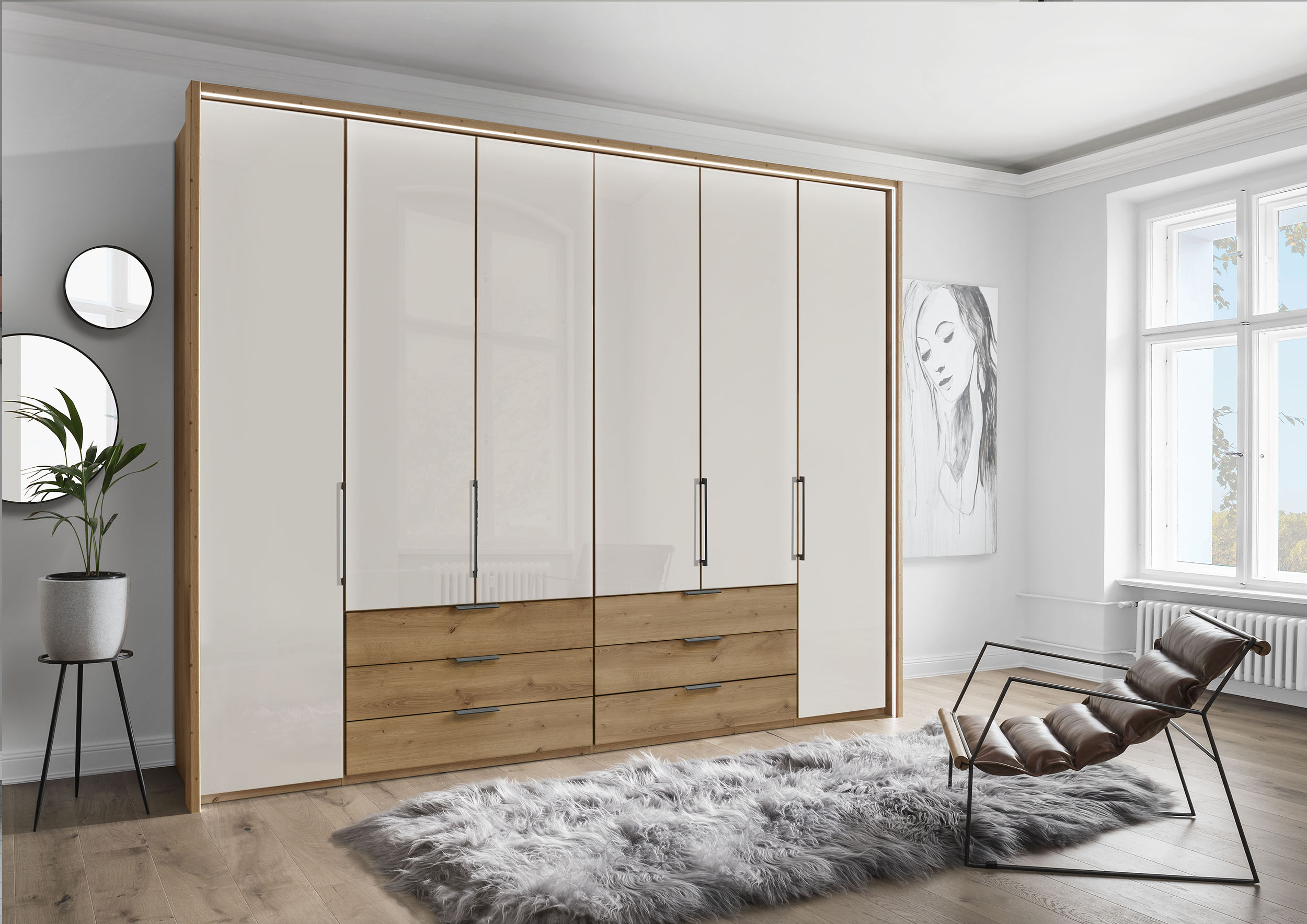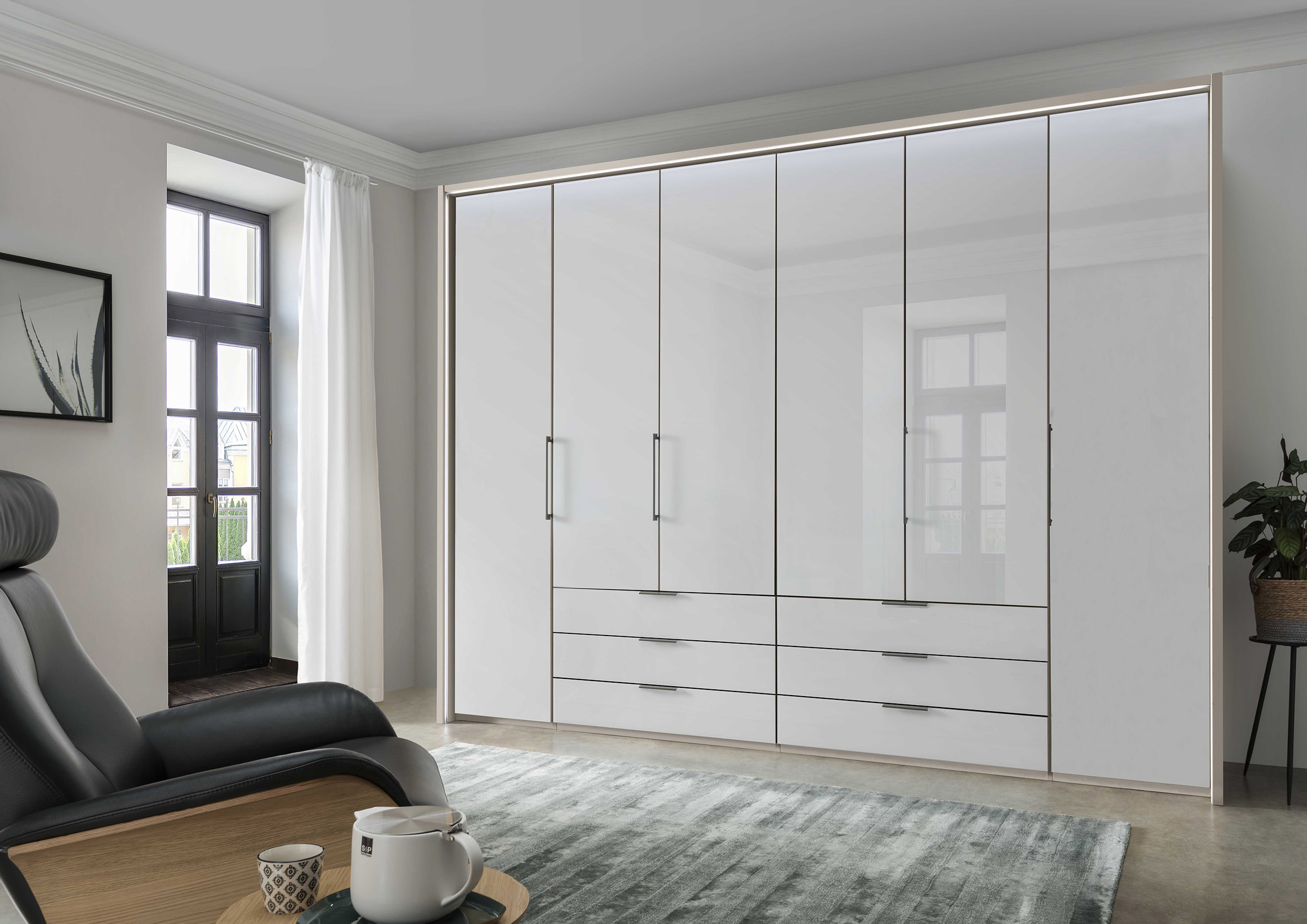 Гардероб Monaco 2000 с 6 чекмеджета, фронт стъкло – 300см