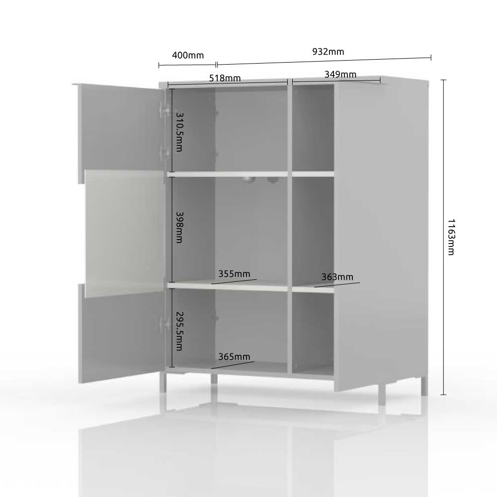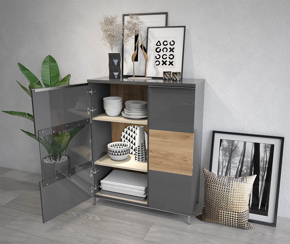 Ниска витрина за хол от колекция ONYX с една цяла врата и една стъклена врата.