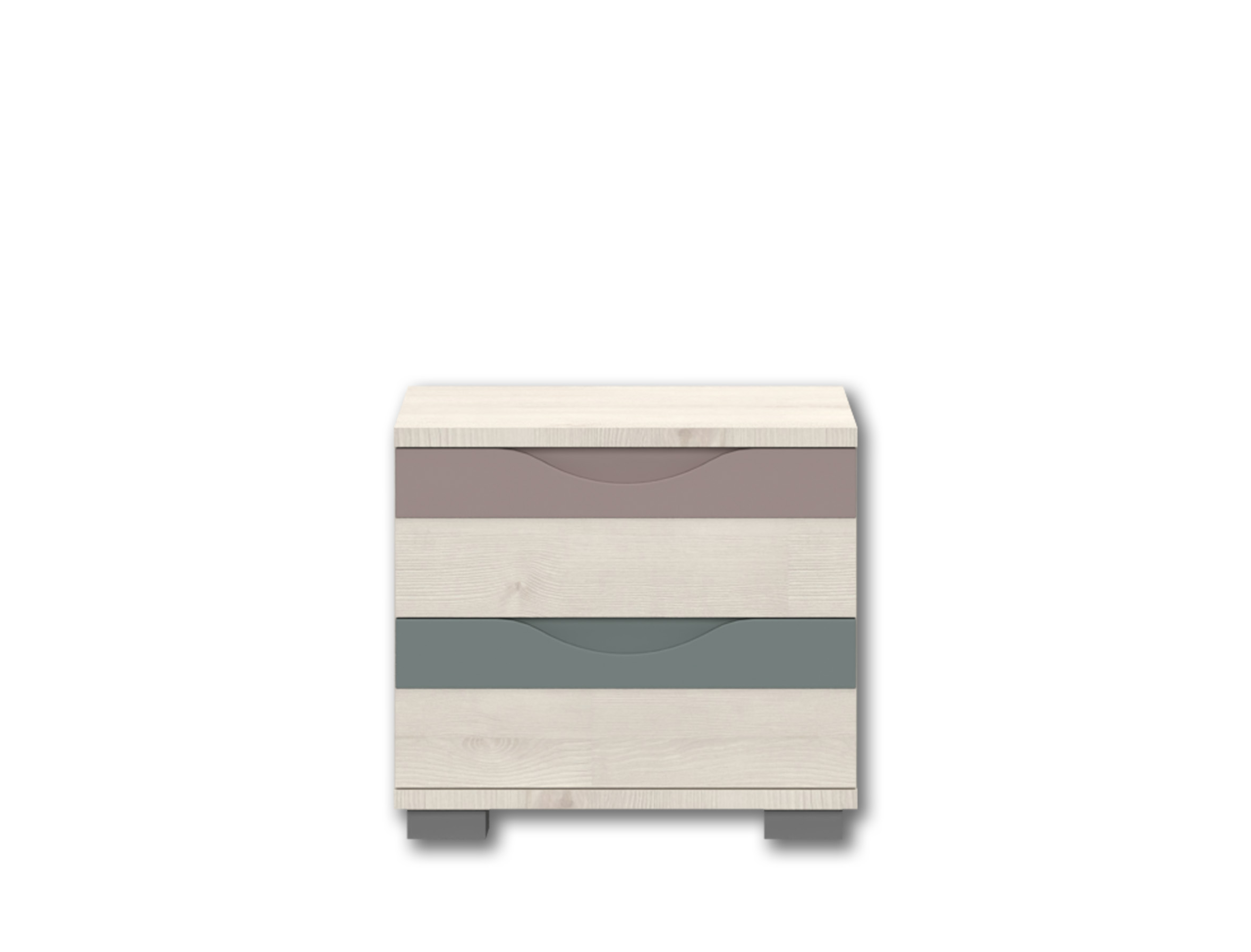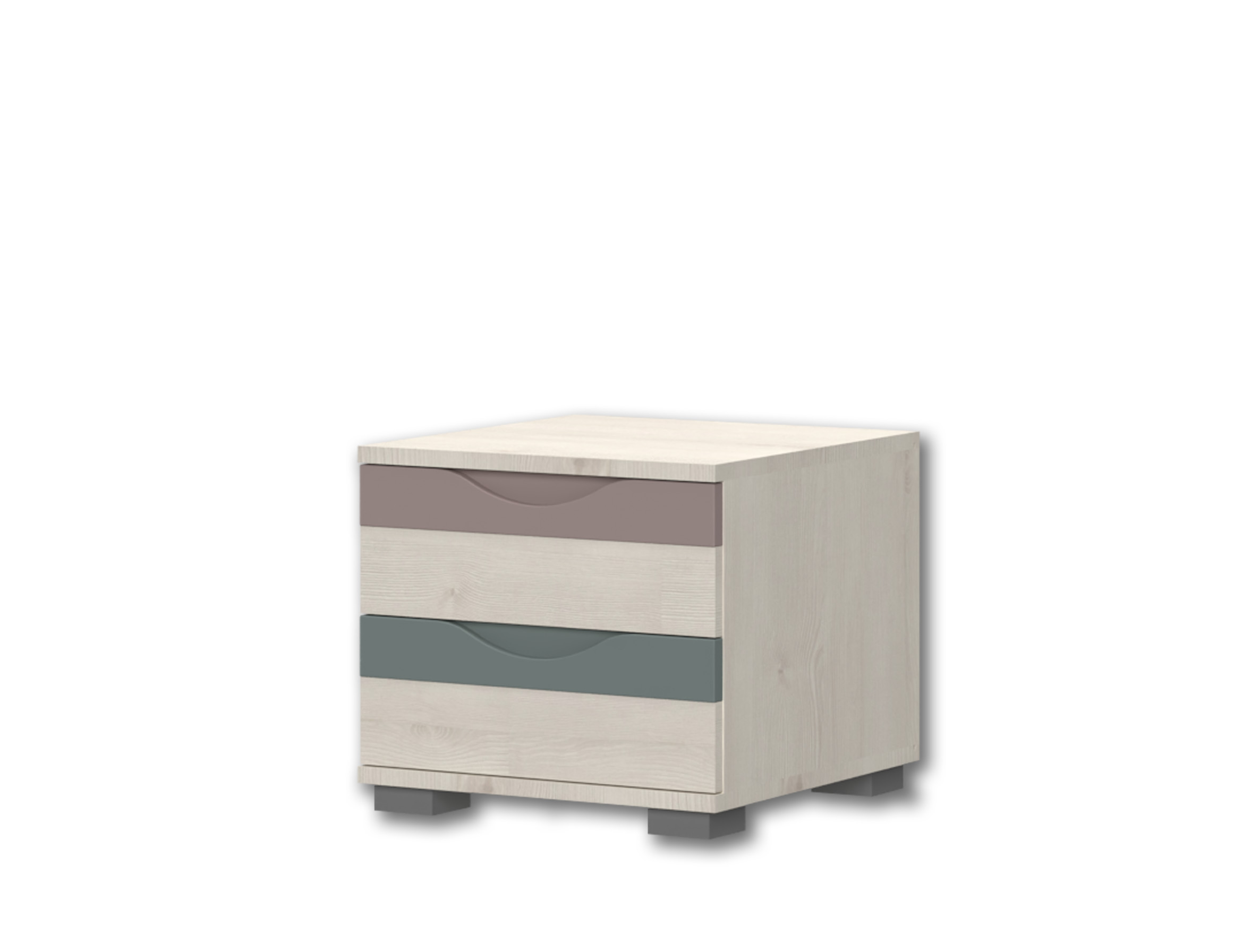 Нощно шкафче за детска спалня от колекция JOY с две чекмеджета с дръжки от МДФ във весели цветове.
