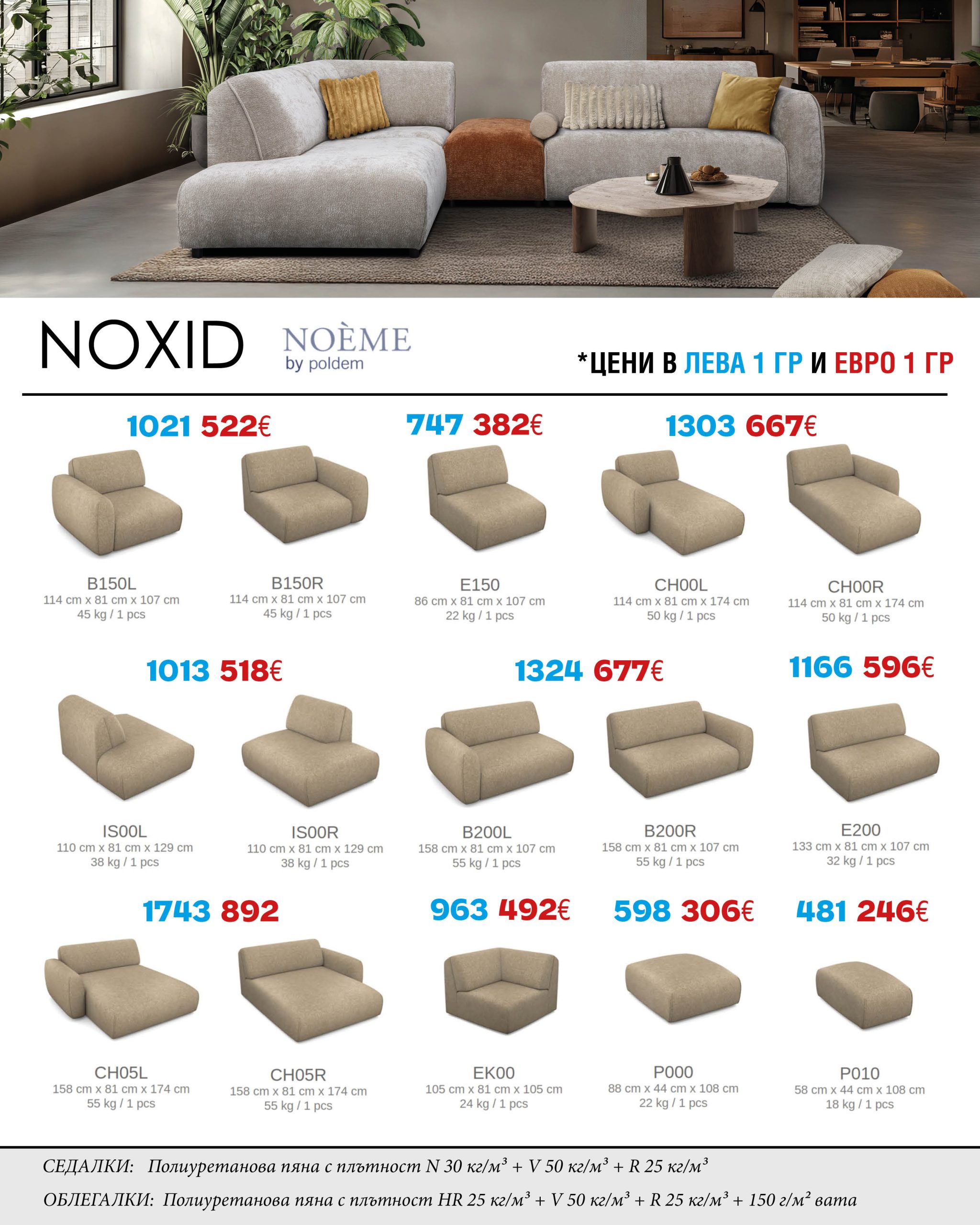 Модулния диван Noxid – гъвкав, стилен и удобен, той ви позволява да оформите своя хол според настроението и нуждите си. Разнообразието от модули ви дава свободата да размествате, разширявате и персонализирате дивана по ваш вкус.