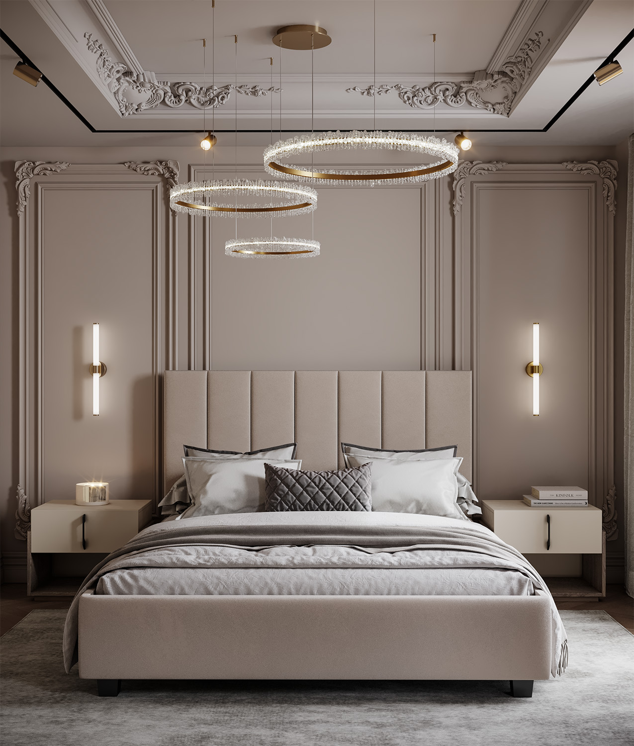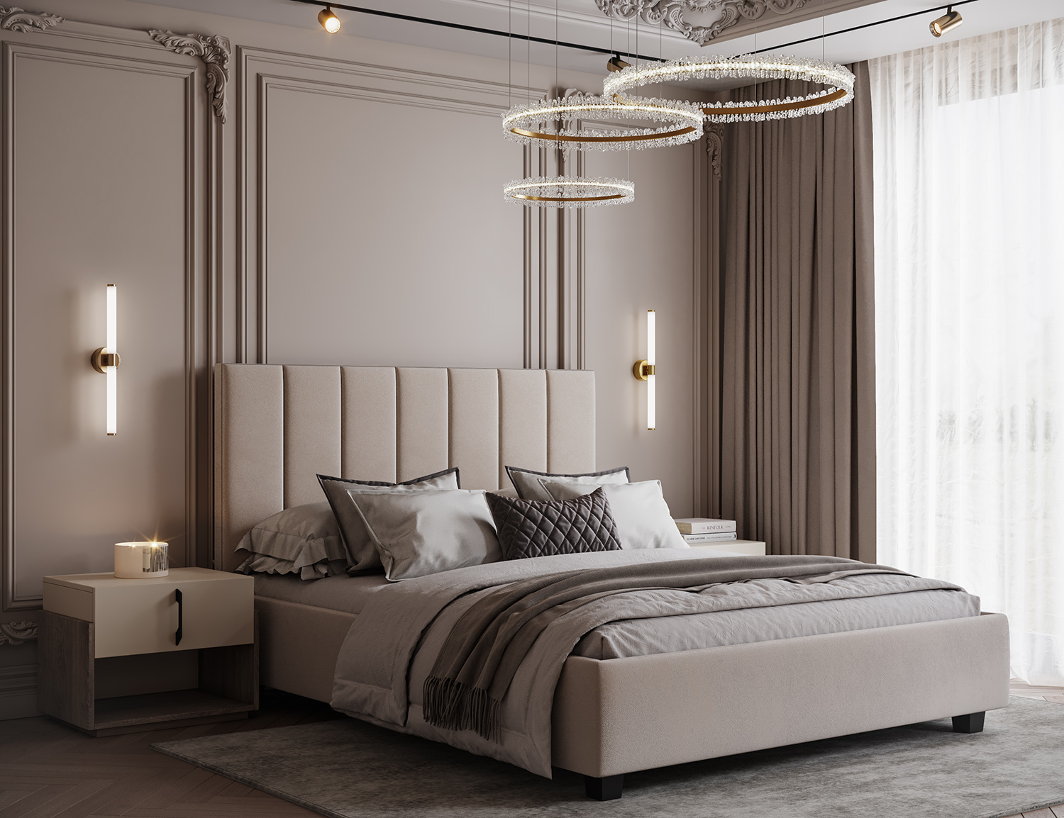 Таблата на леглото Piano е изправена и внушителна, съставена от високи, перфектно симетрични панели, които създават усещане за вертикалност и ред. Фините ръбове и прецизно балансираните пропорции постигат хармония между класическа елегантност и съвременни линии. Присъствието му е благородно – идеално за изискан, но лек и ефирен интериор.