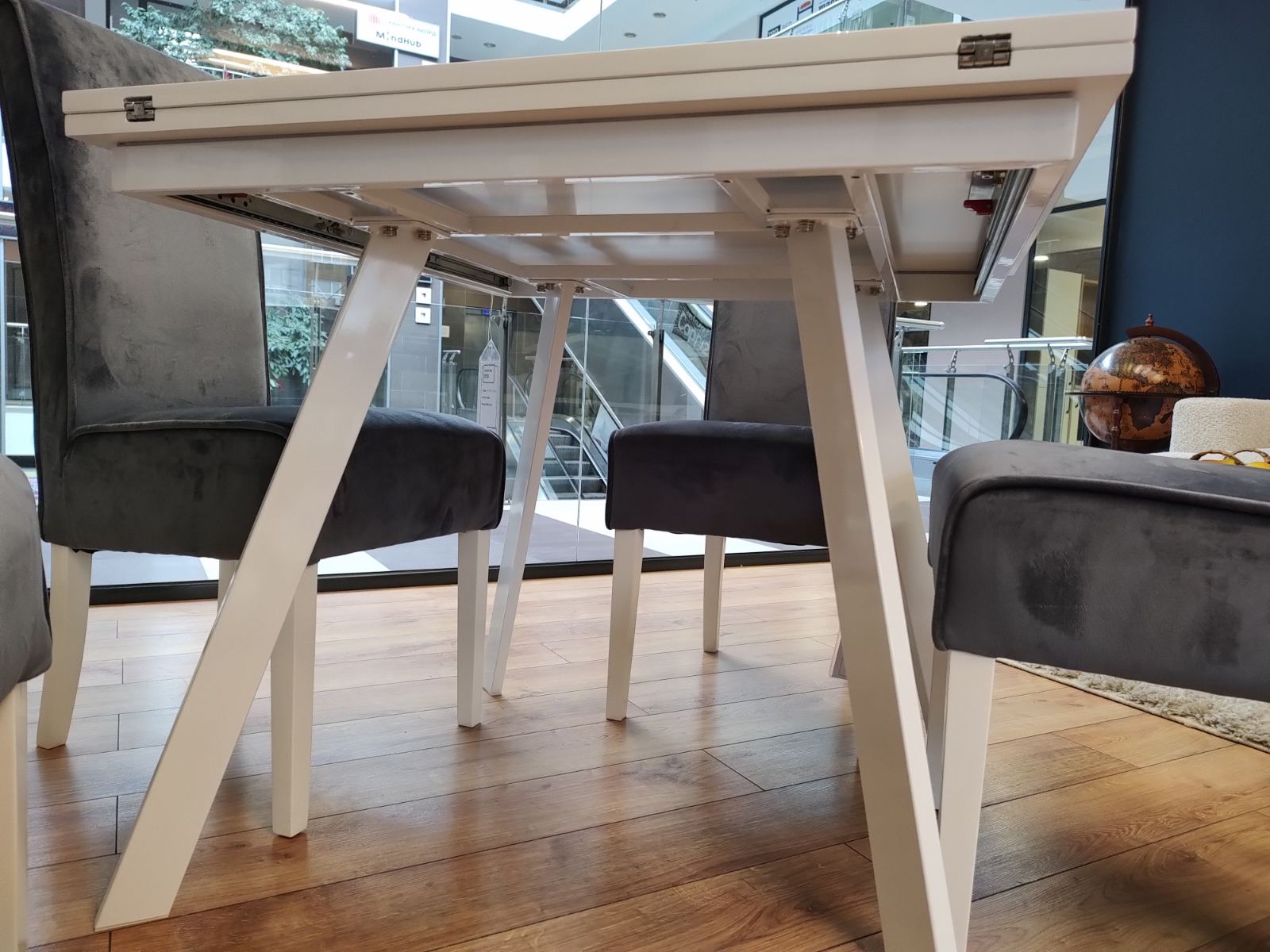 Разтегателна маса с плот изработен от MDF и основа изработена от метал. При разтягане масата удвоява дължината си.