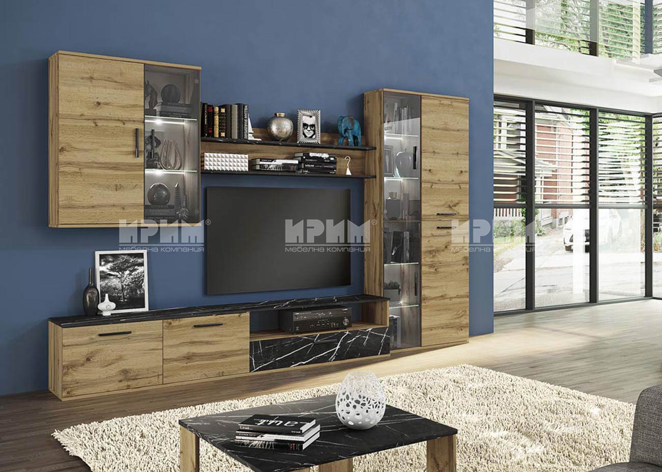 Секция Сити 6057 е страхотно и модерно предложение за стилна секция с имитация черен мрамор. Уникалното предложение е снабдено с лед осветление зад стъклените рафтове, което допълнително придава нужния акцент.