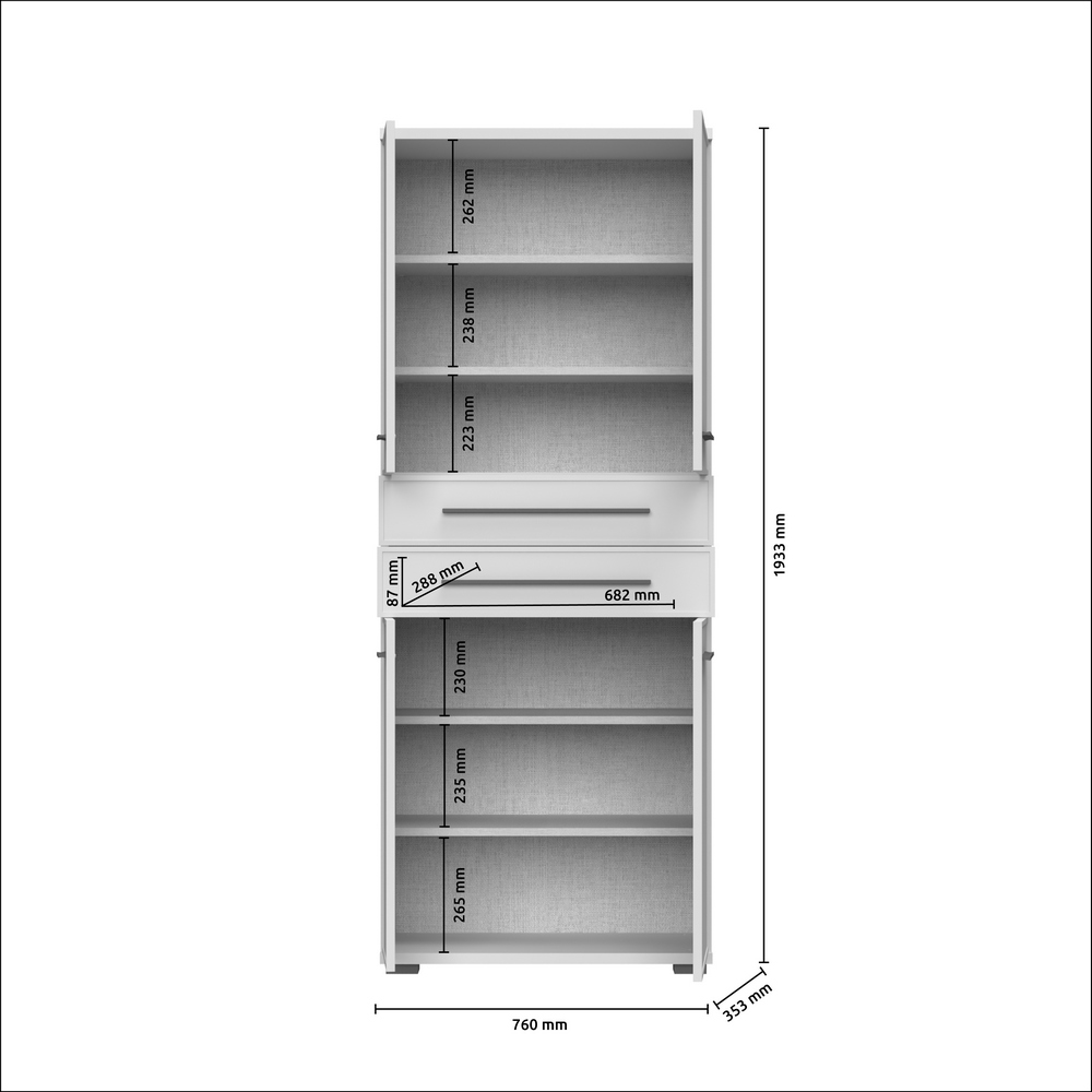 Размери: 76x194x36cm (ширина, височина, дълбочина)