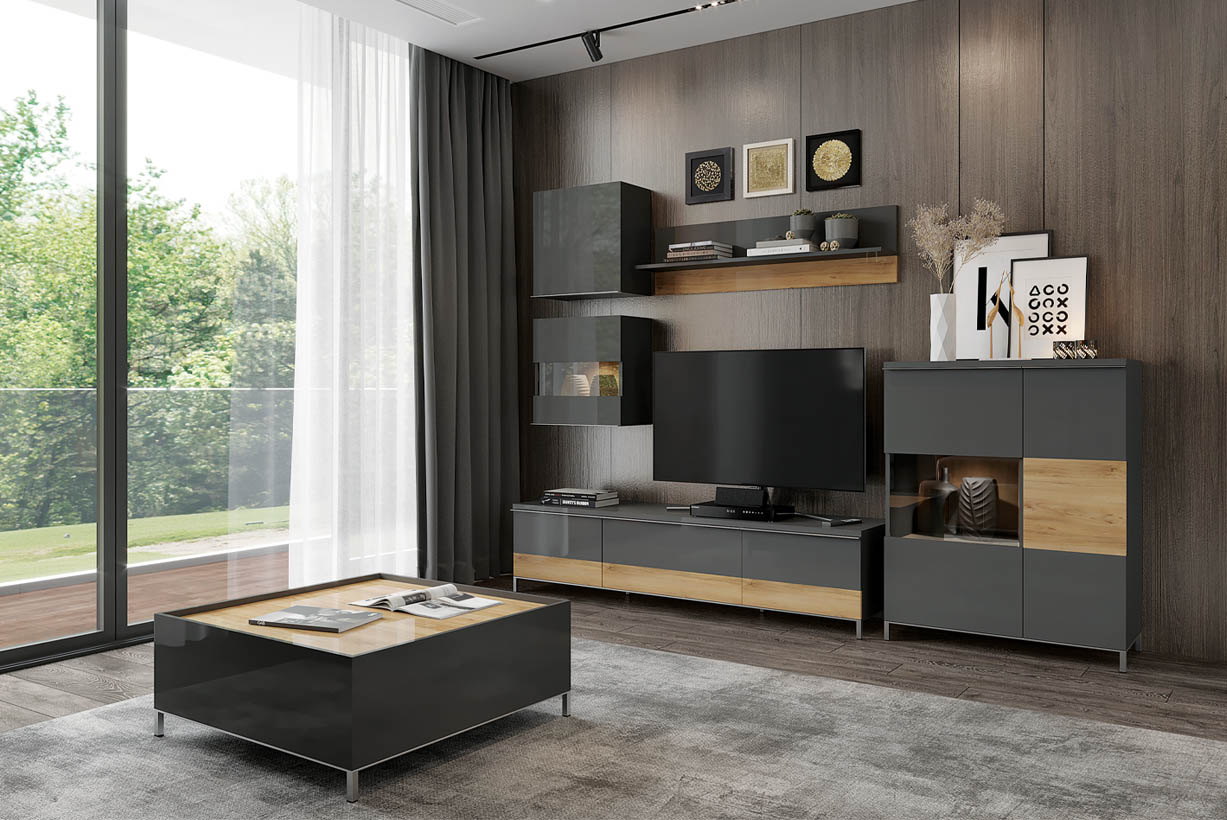 Видимите части на елемента са UV лакирани в супер гланц в атрактивен цвят антрацит