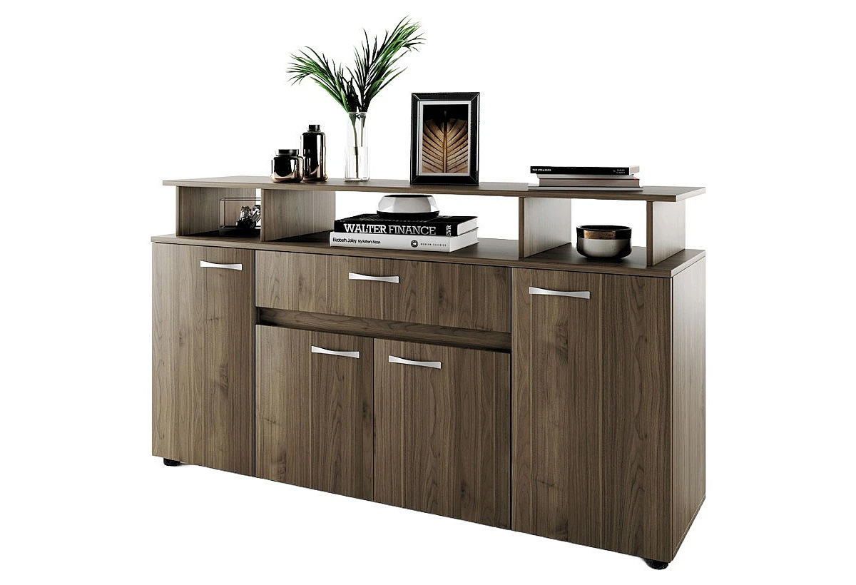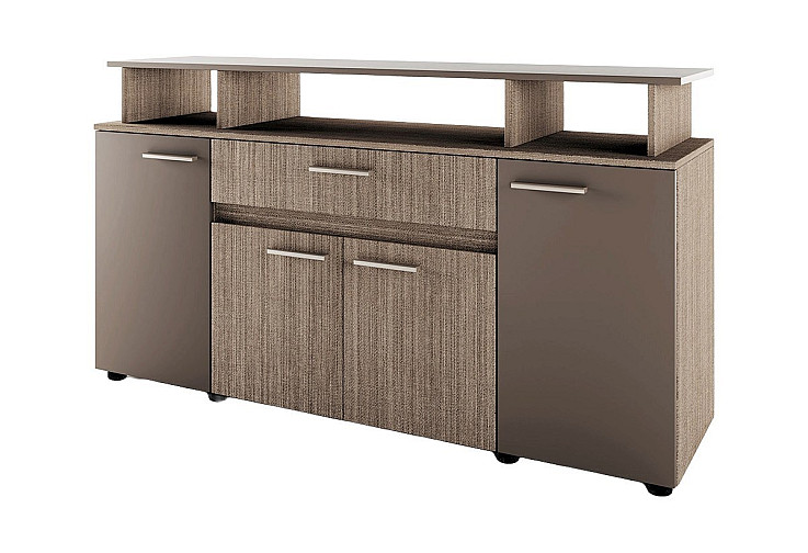 Скрин City 3056 разполага с четири вратички с плавно затваряне, едно чекмедже в средата и рафт.