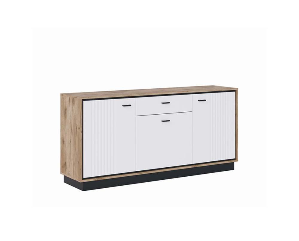 Модул от системата Mestre , която е семпла и изчистена и ще придаде приятен уют в дома ви със съчетанието си от дървесно и бял гланц фолиран MDF с черен корпус и фрезовани вратички.