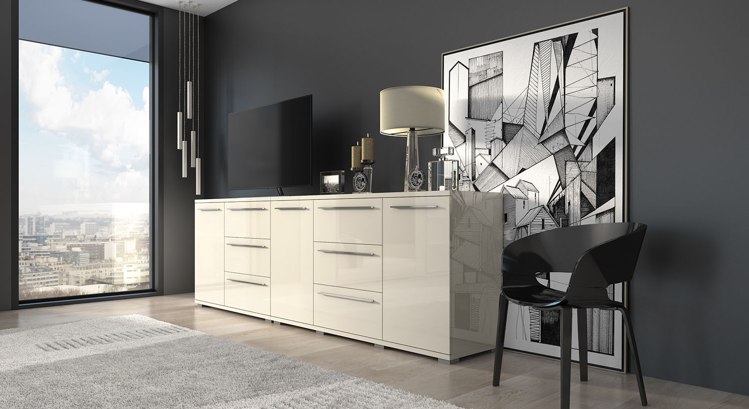 Скрин с три просторни чекмеджета и една вратя от колекция мебели PIANO.