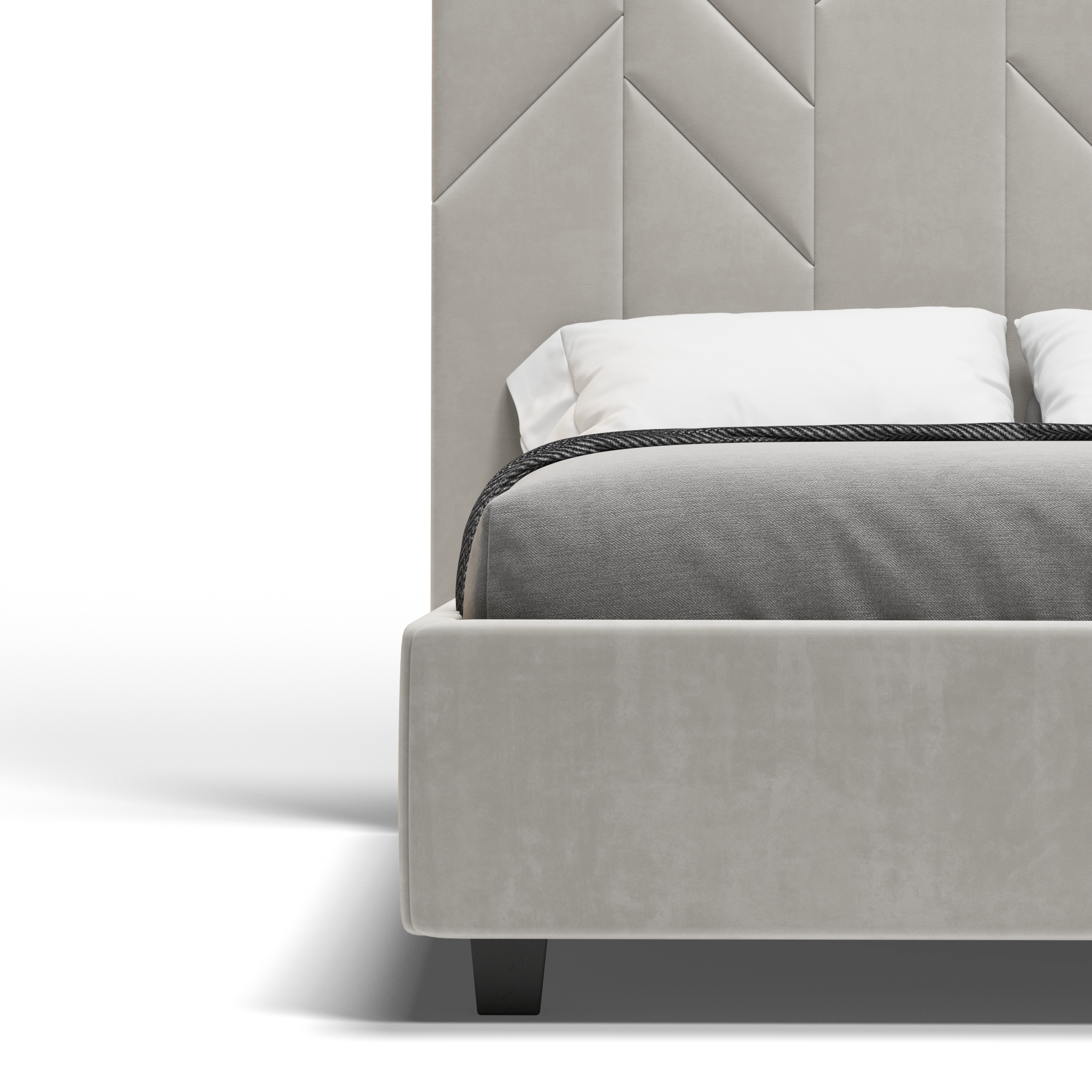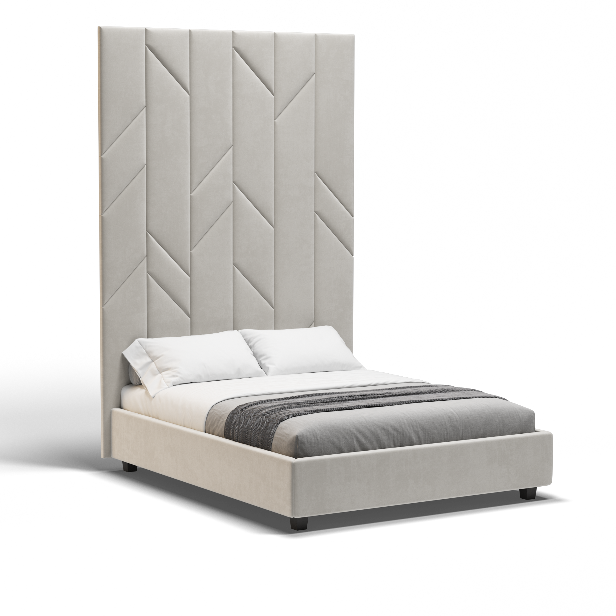 Рамката на леглото, изработена от ПДЧ, обхваща дизайн с прави ъгли и е покрита с гладка материя, а страничната покривка може да остане здраво закотвена или да се свали за лесна хигиена. Имайки предвид специалната атмосфера, която искате да създадете във вашето лично пространство, можете да изберете да интегрирате осветителна система.