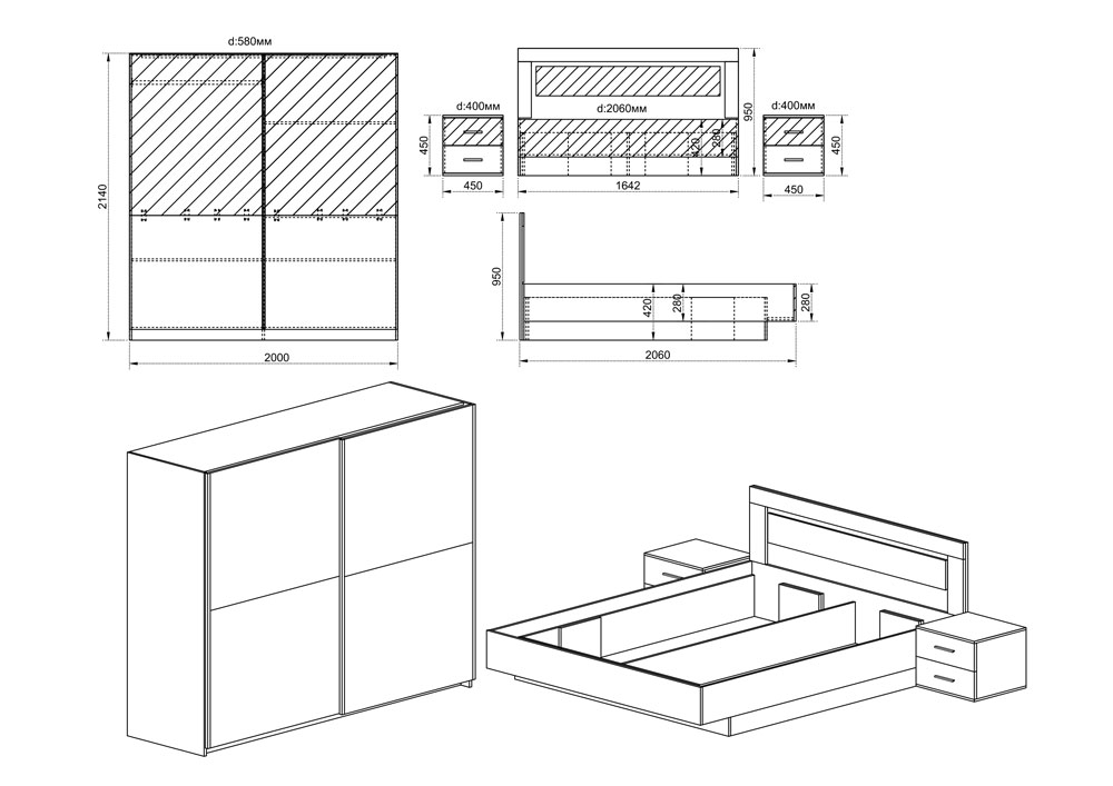 Гардероб : 2000 / 580 / 2145