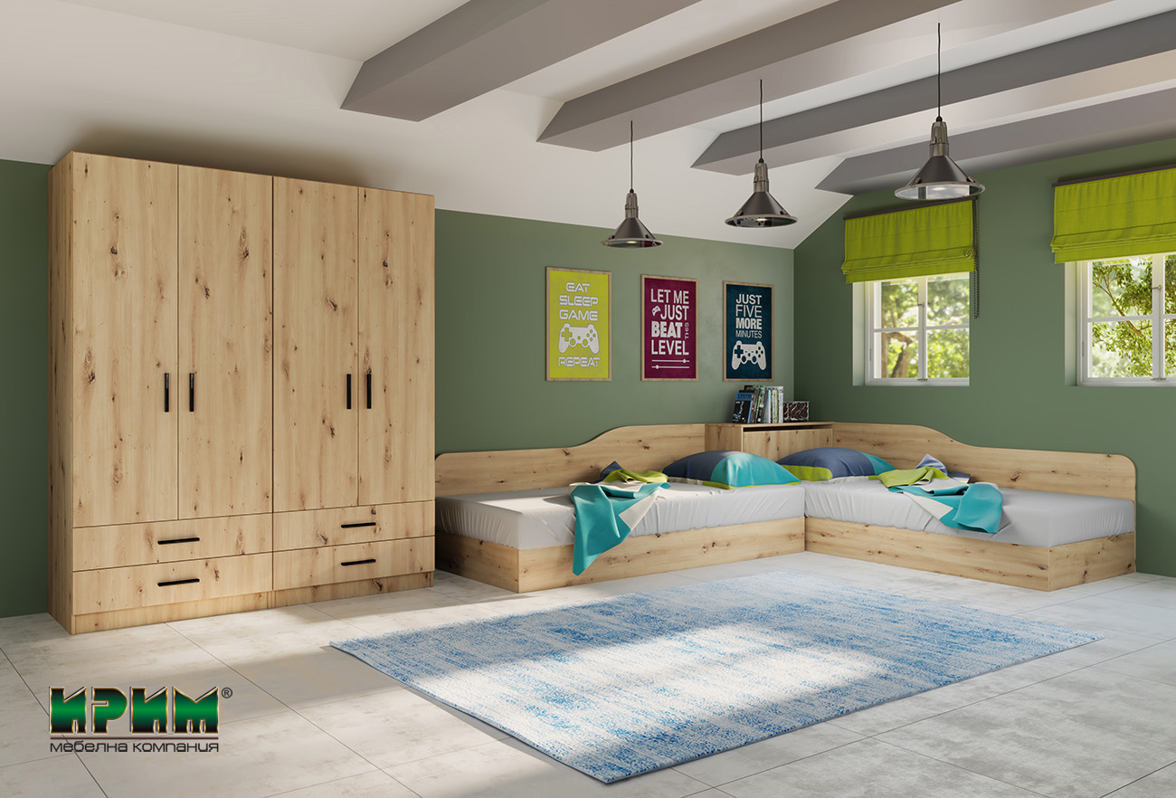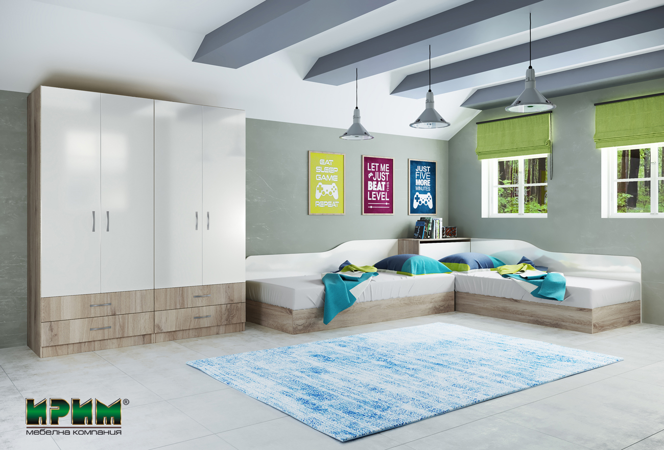 Спален комплект Сити 7064 се състои от елементи, които могат и да се закупят отделно или да се заменят с други. Ъгловите легла намират приложение както за възрастни, така и за деца.