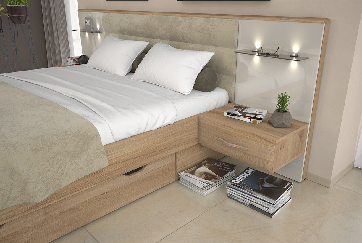 Легло с тапицирана табла KR160-GL: 166x100x221 см за матрак 160х200 см (възможност за легло 180х200) (чекмеджета може да закупите от опциите допълнително)