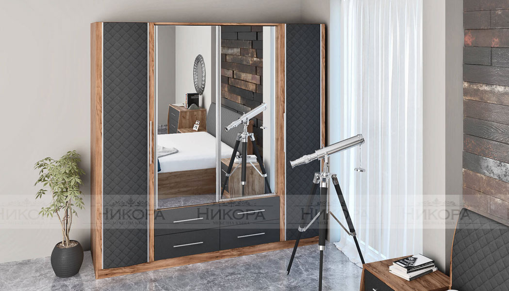 Предно и задно чело на леглото и вратите на гардероба са тапицирани с еко кожа
