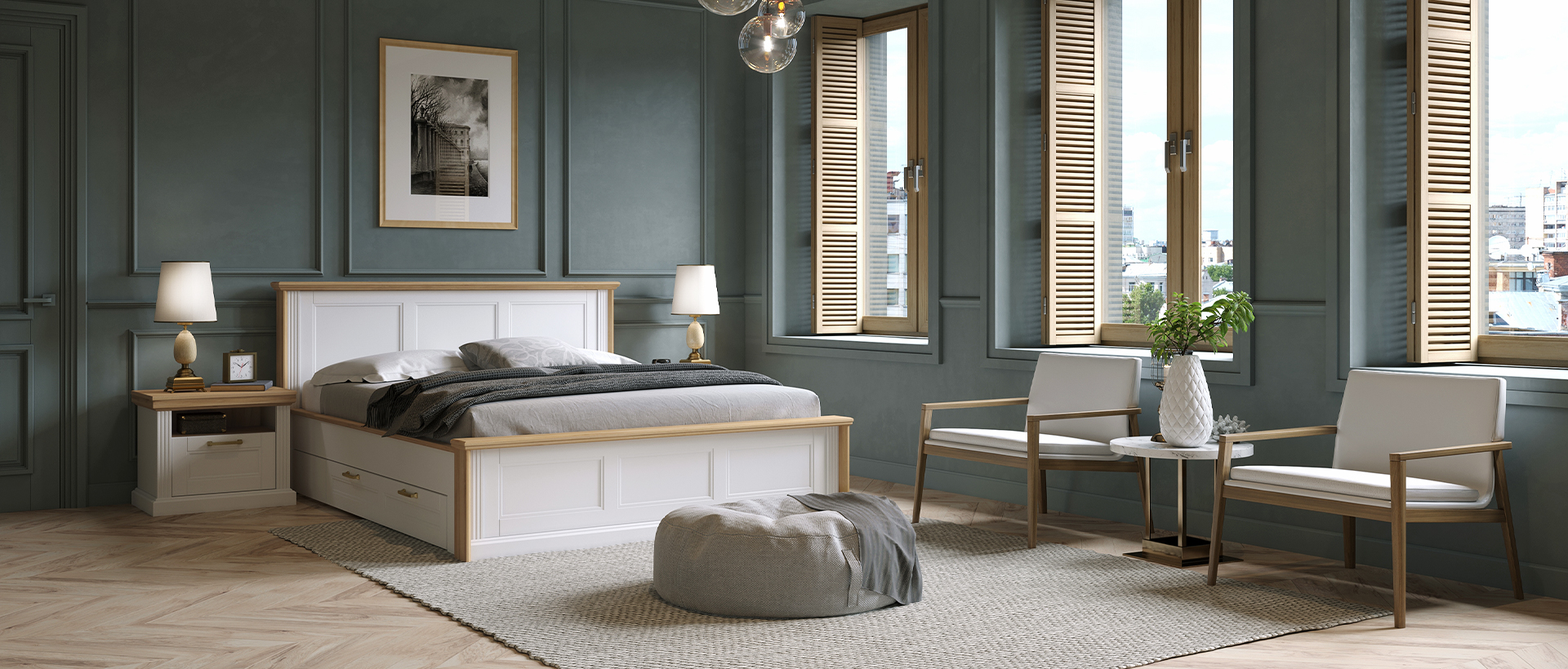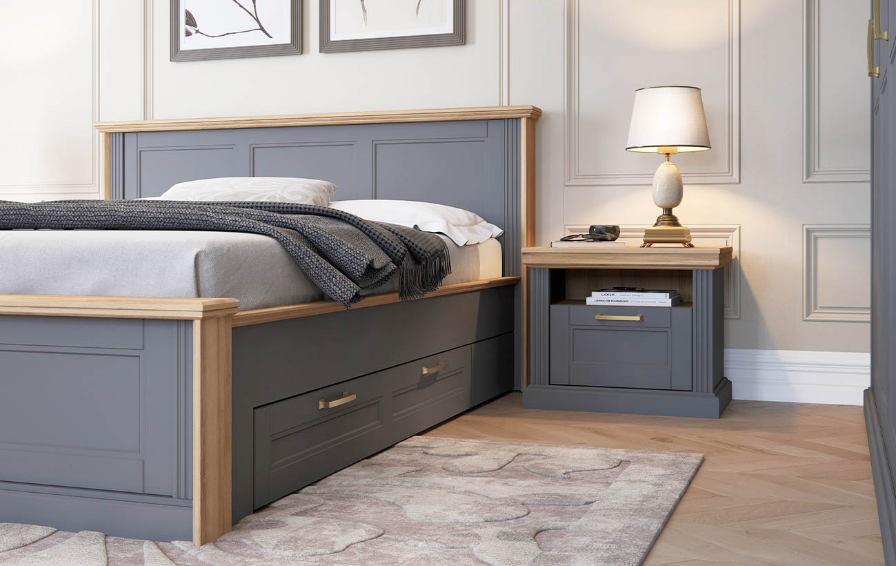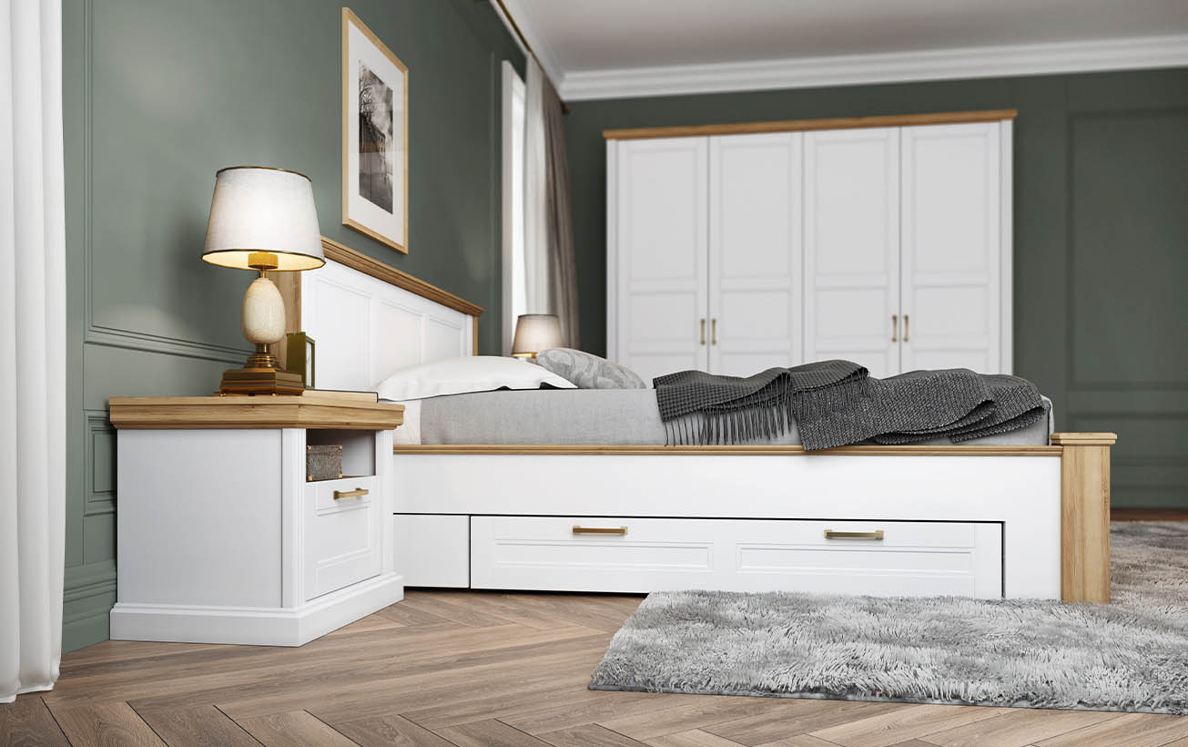Легло KR160-TA: 181 x 100 x 222 см за матрак 160х200 см *чекмеджета се поръчват допълнително от опциите
