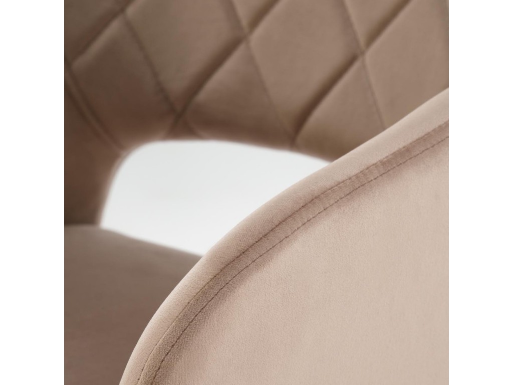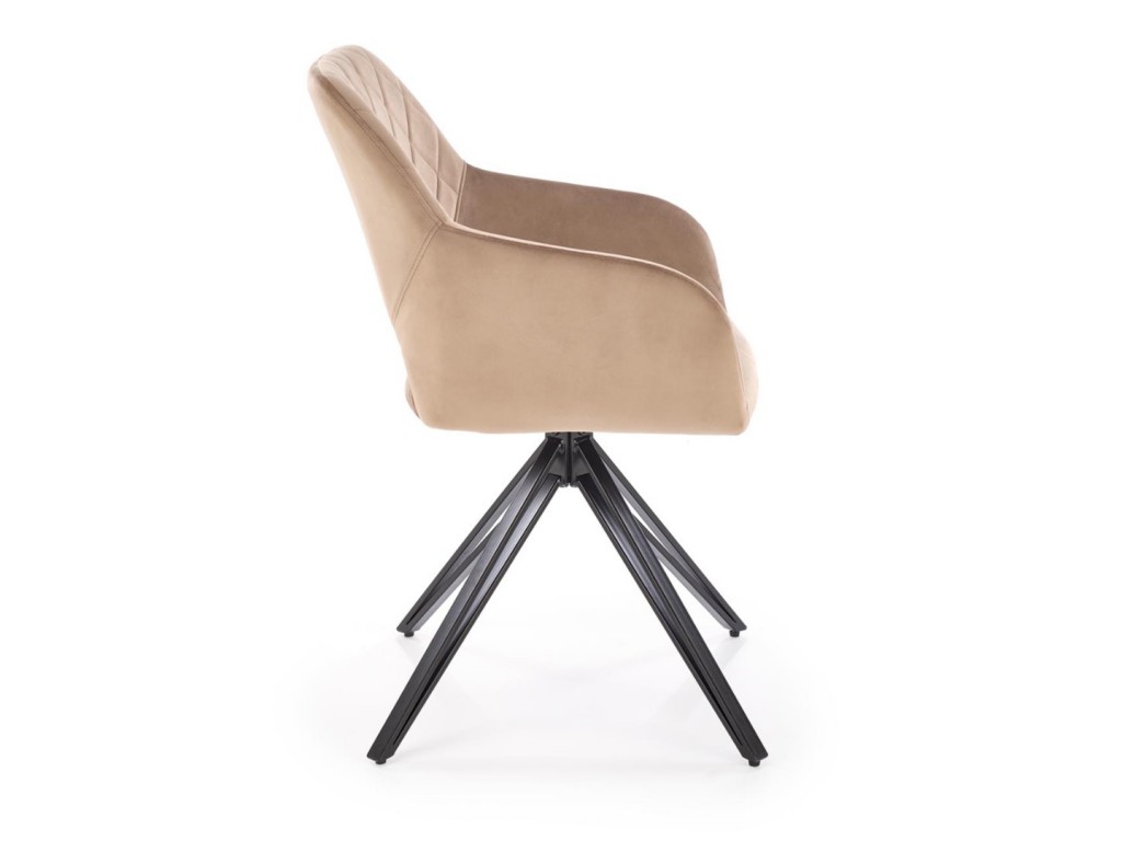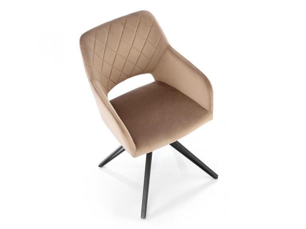Тапициран трапезен стол К535 има удобна седалка, облегалка и подлакътници изработени от мека дамаска, и стабилни метални крака. За по-голямо удобство разполага с функция за въртене на седалката на 360°. Подходящ е за обзавеждането на Вашата кухня или трапезария, както и на модерни и изискани ресторанти.