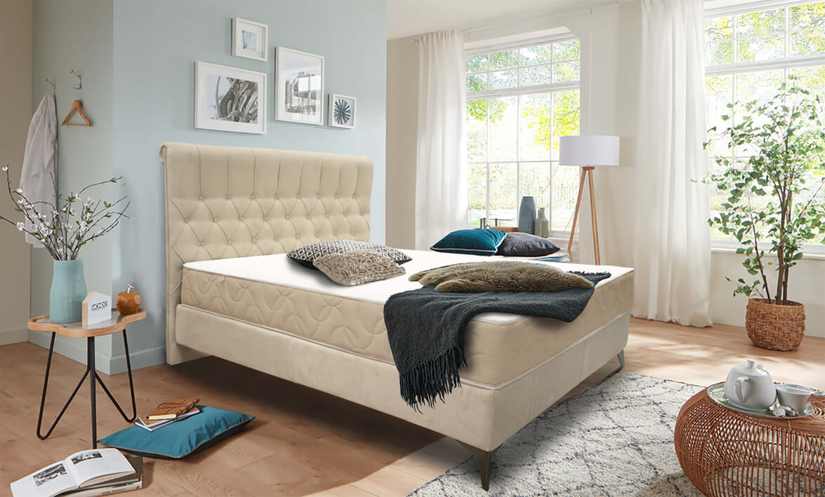 Едно от предимствата на модулна система 4х4+2 е че Ви дава възможност да конфигурирате сами своето легло. Тази система разполага с 4 различни табли, 4 вида бази за матрак, 4 различни крачета и 4 цвята на тапицерията. Освен това базите и таблите могат да бъдат поръчани в 4 размера 90/200, 140/200, 160/200 или 180/200 спрямо пространството с което разполагате. За по-стилна визия може да поръчате матрак с тапициран борд от същата дамаска с която са изработени базата и таблата. Тази опция се отнася за всички модели матраци на фирма Класик. За още по-голям комфорт може допълнително да поръчате Топ матрак „Boxspring“.
