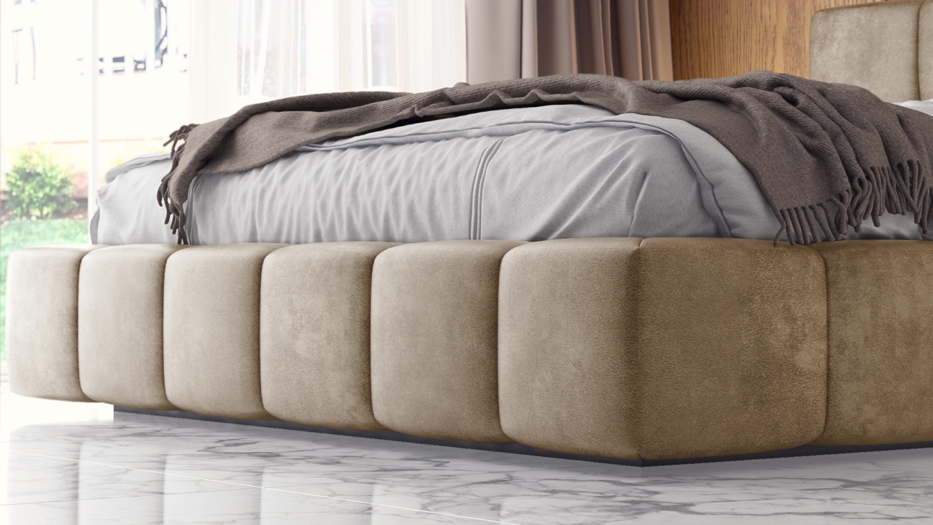 Тапицирано легло LARGO ще Ви впечатли със своя индивидуален и неповторим дизайн. Леглото се изработва с обемни детайли, като дебелината и мекотата им ще впечатли и най-изтънчения вкус. Царгите на леглото се изработват с дебелина 150мм, като вложения в тях дунапрен е с дебелина 60мм. Царгите се доставят на две части, като се съединяват точно по средата на леглото. По този начин се получава перфектна мека извива в двата предни ъгъла на леглото. Таблата е обемна, с дебелина 150мм, като вложения в нея дунапрен е с дебелина 60мм.