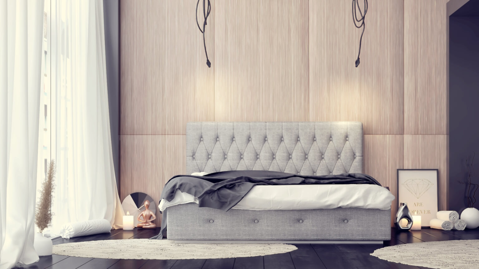 Подматрачната рамка, матракът и нощните шкафчета не са включени в цената.
