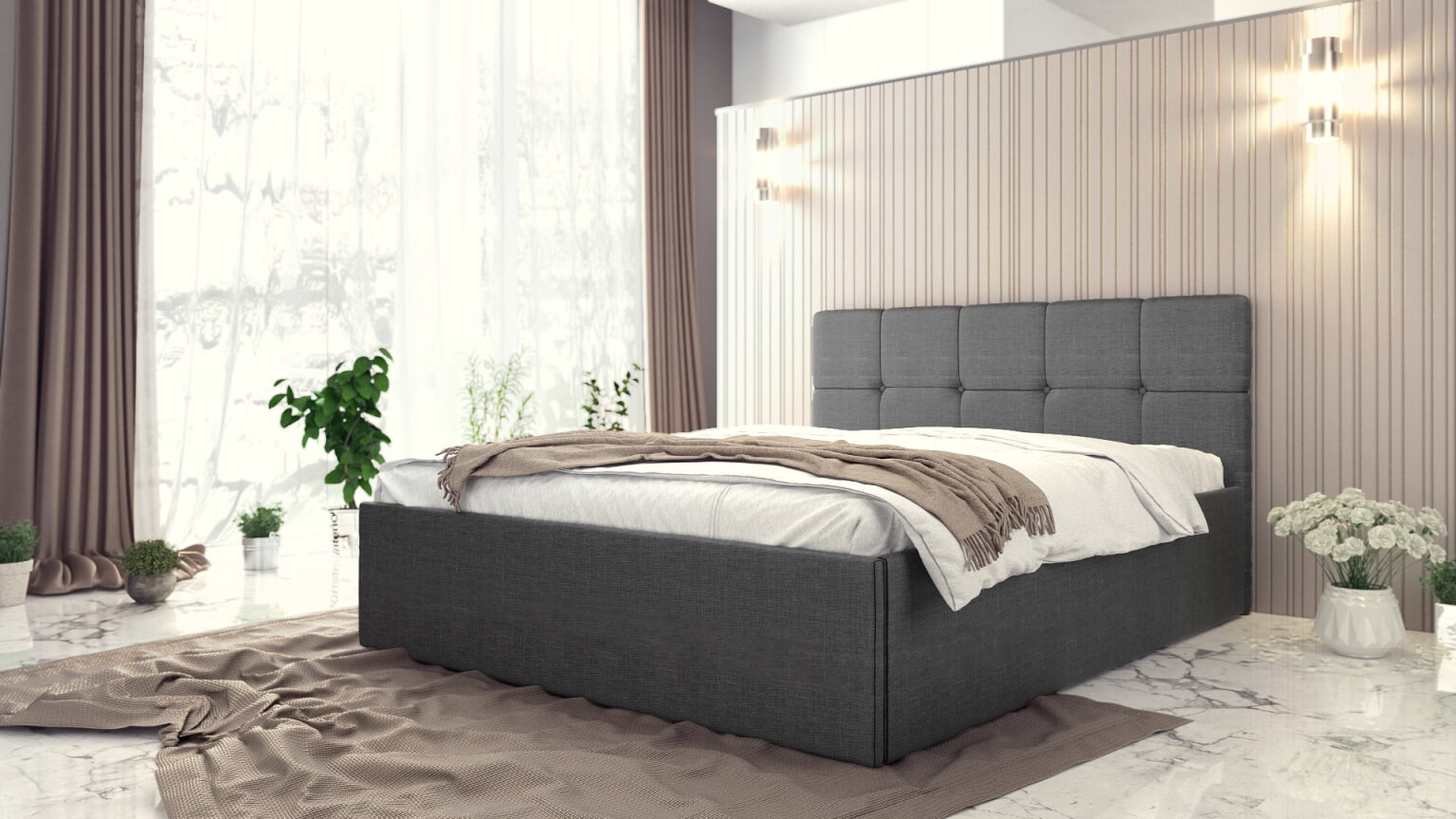 За любителите на високи легла. Леглото е изработено с 40 см височина на царгите. Вътрешната кутия на леглото е с дълбочина 30 см, което позволява да се постигне голяма цялостна височина на леглото. Мека и комфортна табла за облягане. Изключително здраво и надеждно легло. Притежава стабилна конструкция от висококачествено ПДЧ с дебелина 18 мм.