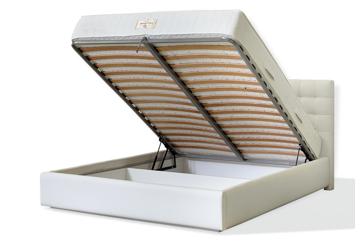 Меките повърхности на леглото и нежната кожа, от която се изработва, ще допринесат за неповторимия лукс и стил във вашата спалня. С цел максимална практичност, този модел се изработва с допълнителна ракла за съхранение на багаж. Леглото се изработва с повдигащ механизъм, към който можете да прикрепите еднолицев матрак или подматрачна рамка в случай, че ще използвате двулицев матрак.