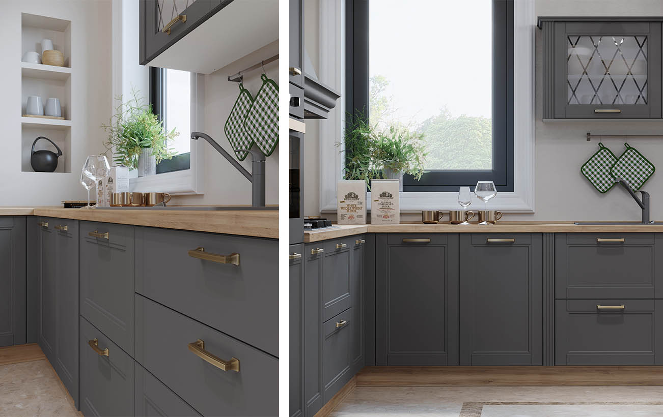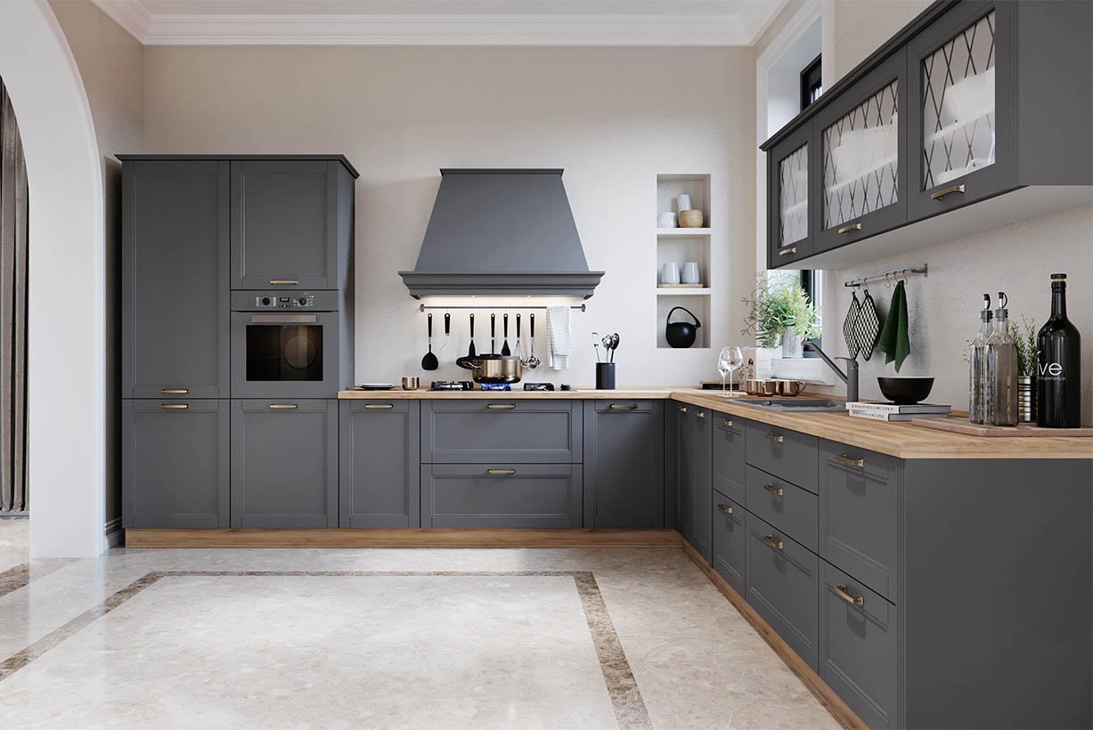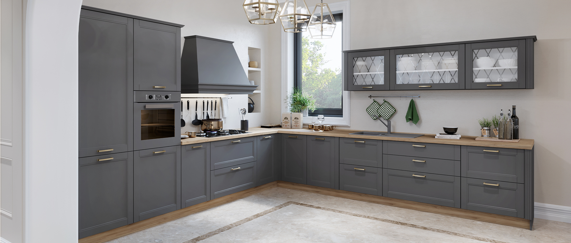 Модулна система Tara с елегантен класически дизайн позволява изготвяне на кухни по индивидуален проект чрез богат избор измежду 50 модула + много аксесоари. Профилирани 3D фронтове MDF, в цветове Графит и Бяло и UV мат-лак покритие. .