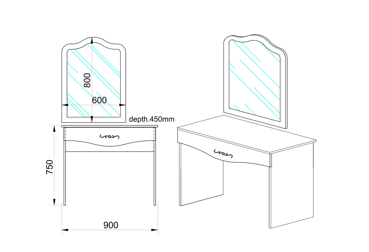 Тоалетка Сити 3048 е изцяло бяла и много стилна. Разполагате с чекмедже и огледало.