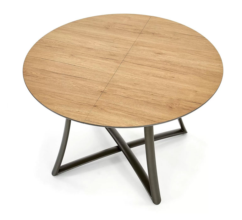 Метални интересни крака и плот от мдф в нежен цвят дъб, Модерна маса за всекидневна или трапезария.