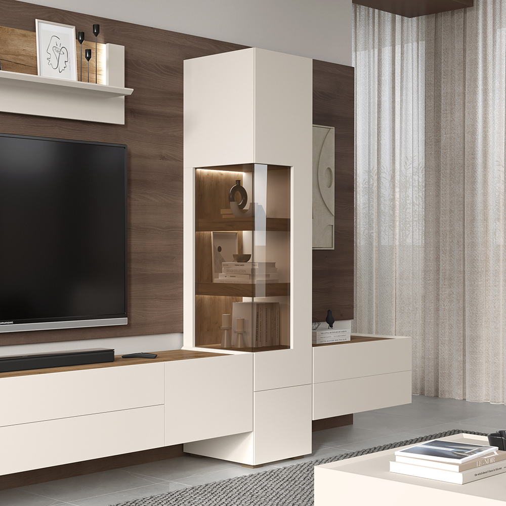 – висока витрина със средна врата и стъклени витрини (кафяво стъкло парсол)