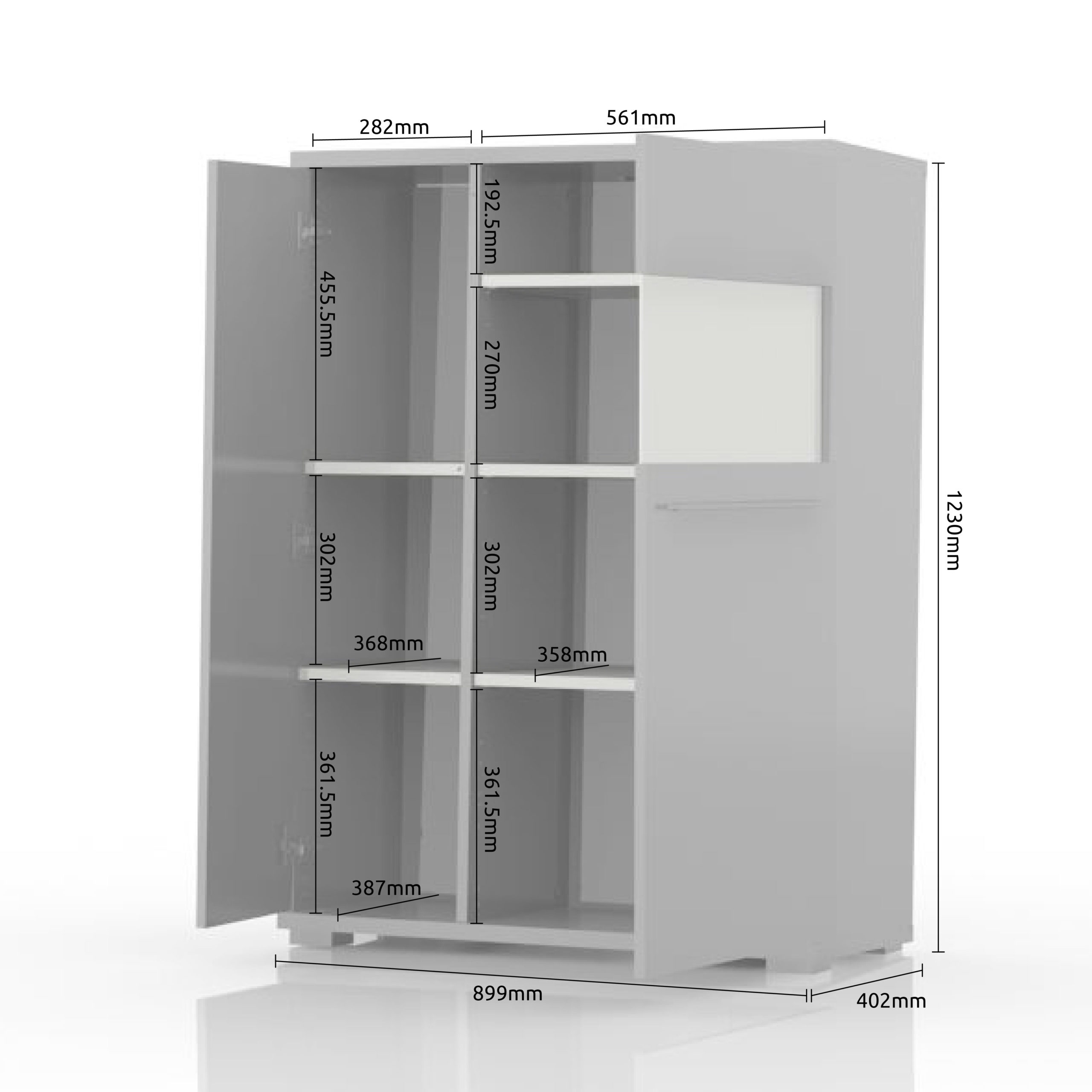 Чрез промяна на позицията на вратата на витрината, вратата може да се отваря наляво или надясно, в зависимост от вашия избор.