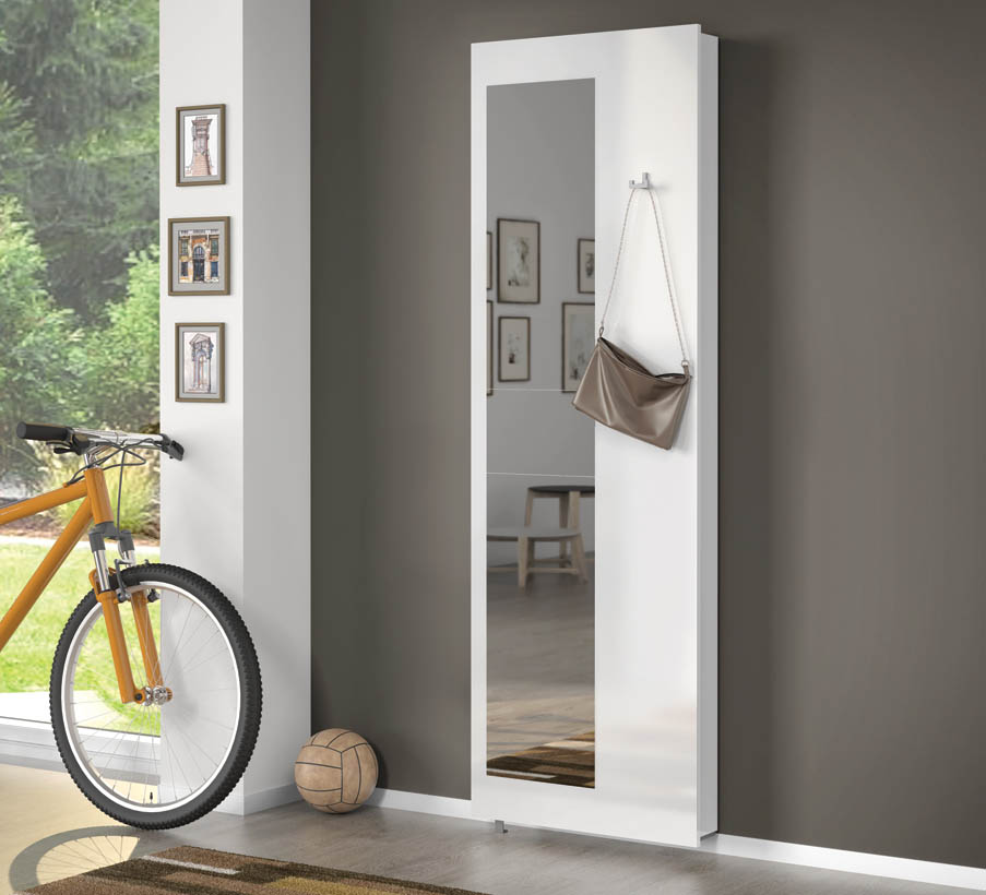 Шкафът за обувки е с декоративна закачалка и възможност за добавяне на монтажно огледало, като част от аксесоарите (от опциите)