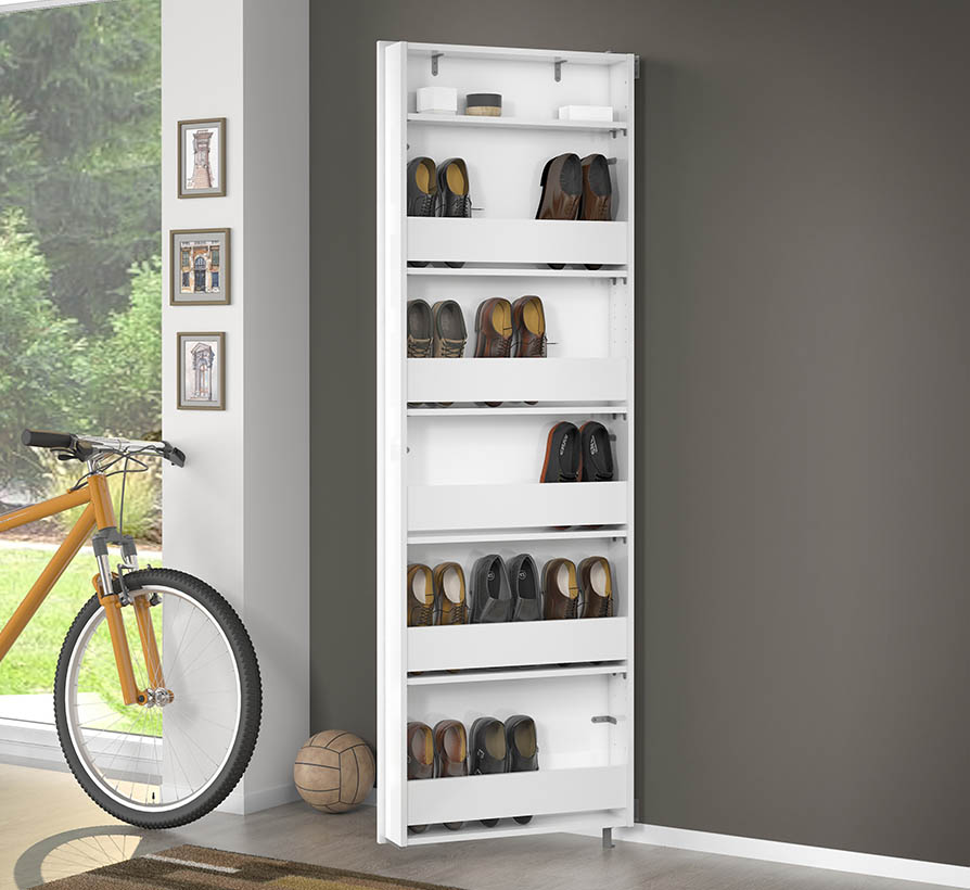 Функционален шкаф за обувки от колекция CPL с капацитет над 15 чифта обувки, което го прави идеален за тесни коридори.