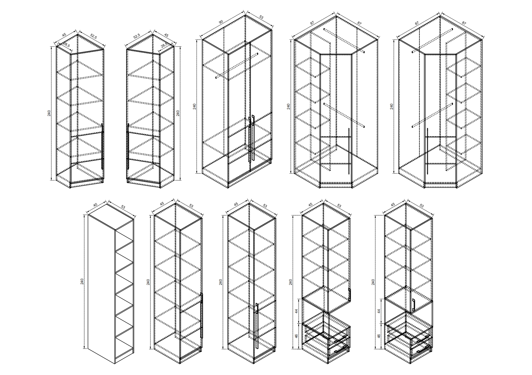 Вижте и модулните гардероби с опционални темперирани стъклени врати и лед осветление.